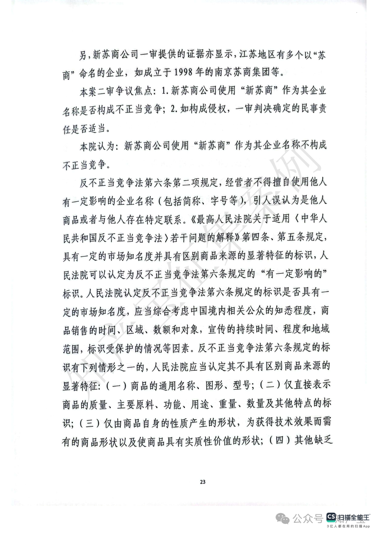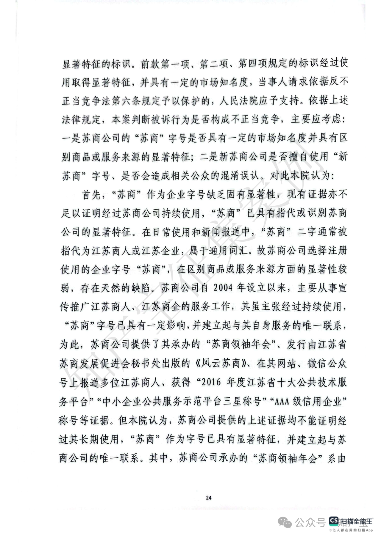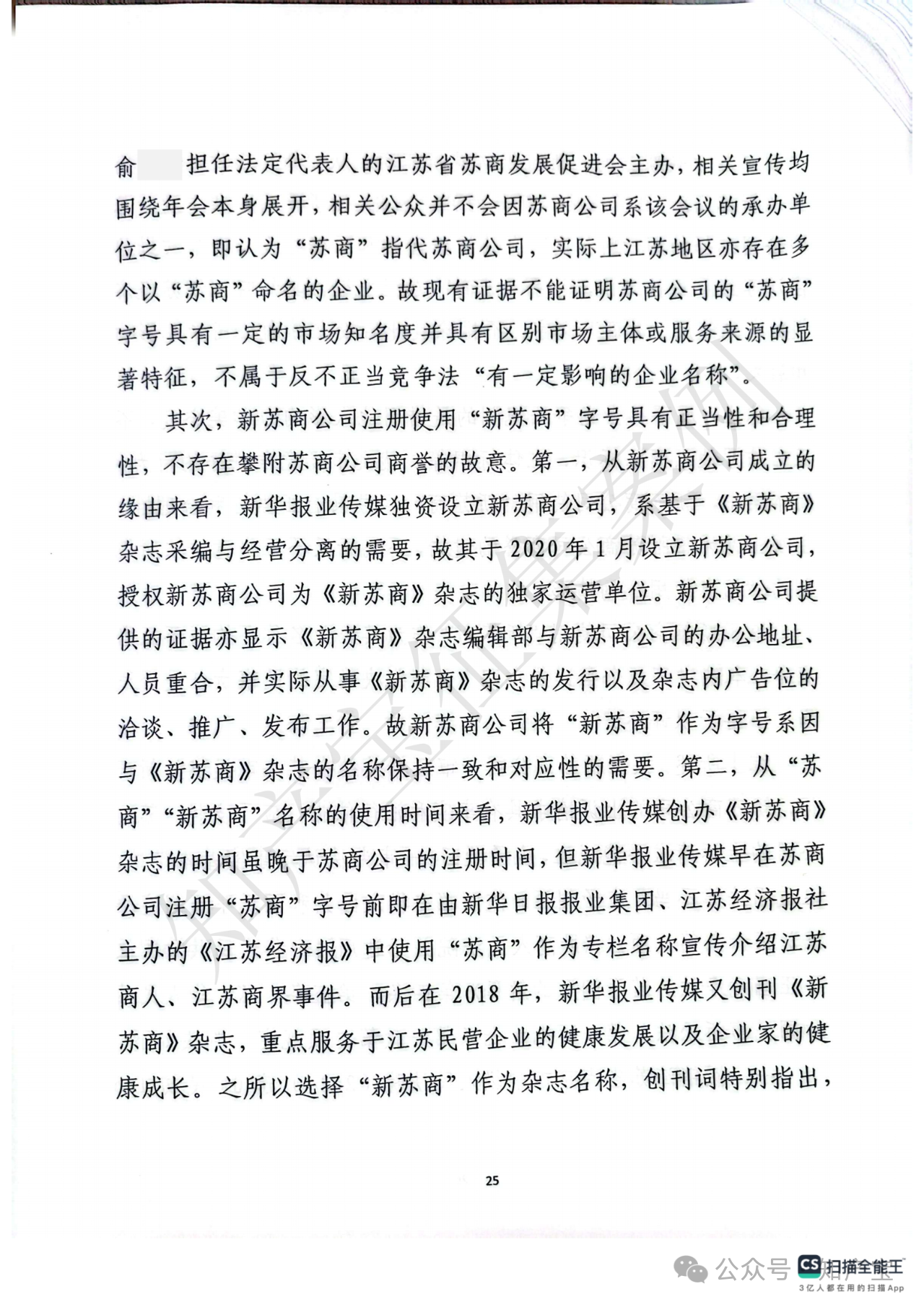 首先,关于江苏苏商传媒集团有限公司主张的“苏商”字号是否构成反不正当竞争法所保护的“有一定影响的企业名称”,江苏省高院认定“苏商”二字缺乏固有显著性,现有证据不足以证明该字号经苏商公司持续使用后已具备指代或识别其市场主体或服务来源的显著特征。在日常使用及新闻报道中,“苏商”通常被作为指代江苏商人或江苏企业的通用词汇,故苏商公司的“苏商”字号不属于具有一定市场知名度且能区分商品或服务来源的企业名称。其次,关于江苏新苏商文化传媒有限公司注册使用“新苏商”字号的正当性,法院认为其行为不具有攀附苏商公司商誉的故意:其一,新苏商公司系新华报业传媒因《新苏商》杂志采编与经营分离需要而独资设立;其二,虽新华报业传媒注册新苏商公司的时间晚于苏商公司注册“苏商”字号的时间,但新华报业传媒早于苏商公司注册前已在《江苏经济报》中使用“苏商”作为专栏名称宣传江苏商人及商界事件,后于2018年创刊《新苏商》杂志时选择“新苏商”作为名称,创刊词明确“新江苏呼唤新苏商、新时代造就新苏商”,赋予“新苏商”特殊含义及明确指向,旨在服务江苏民营企业与企业家发展。综上,新苏商公司使用“新苏商”字号具有合理背景与正当意图,主观无攀附故意,不构成反不正当竞争法规定的“擅自使用”他人有一定影响企业名称的不正当竞争行为。