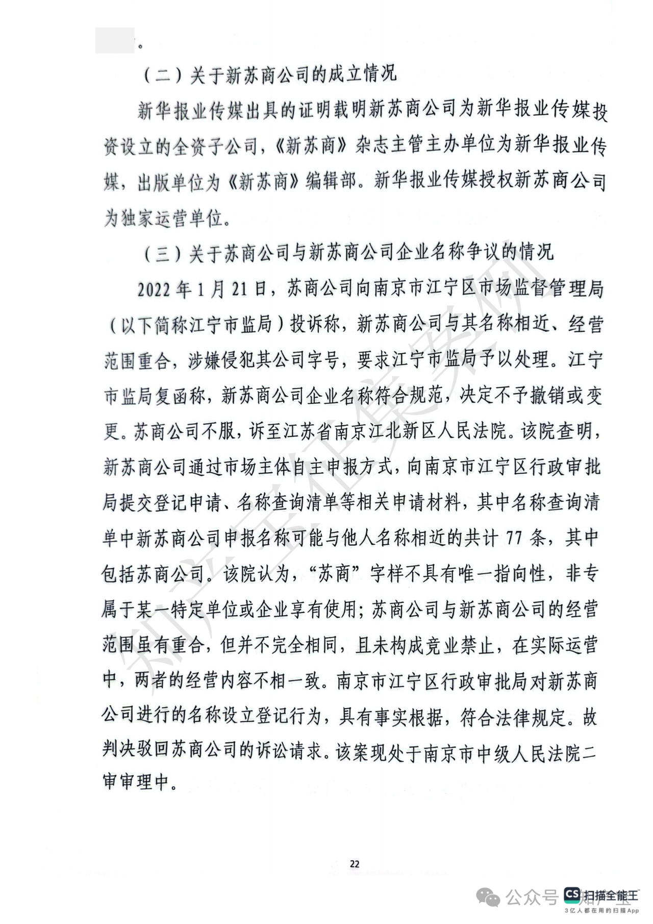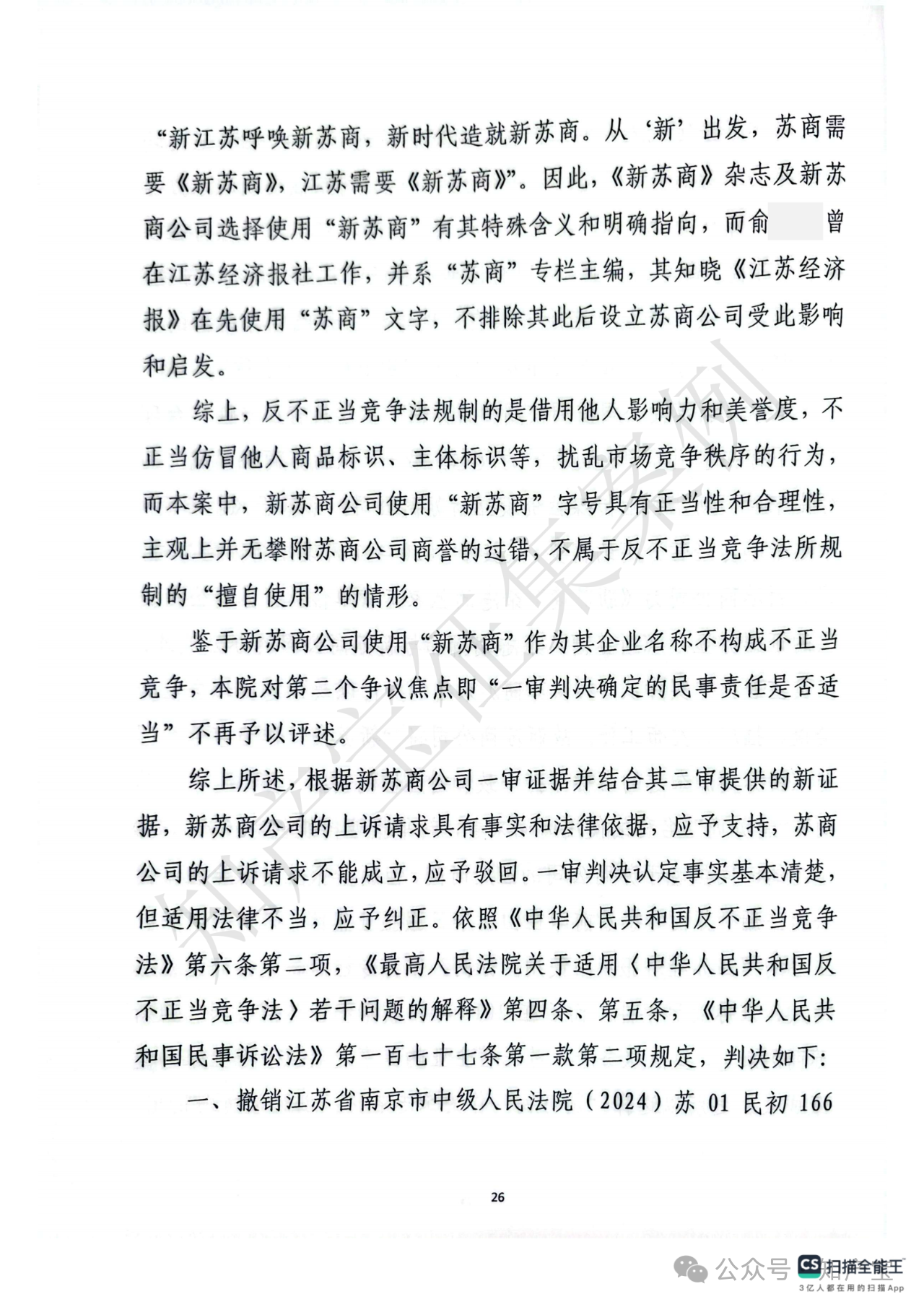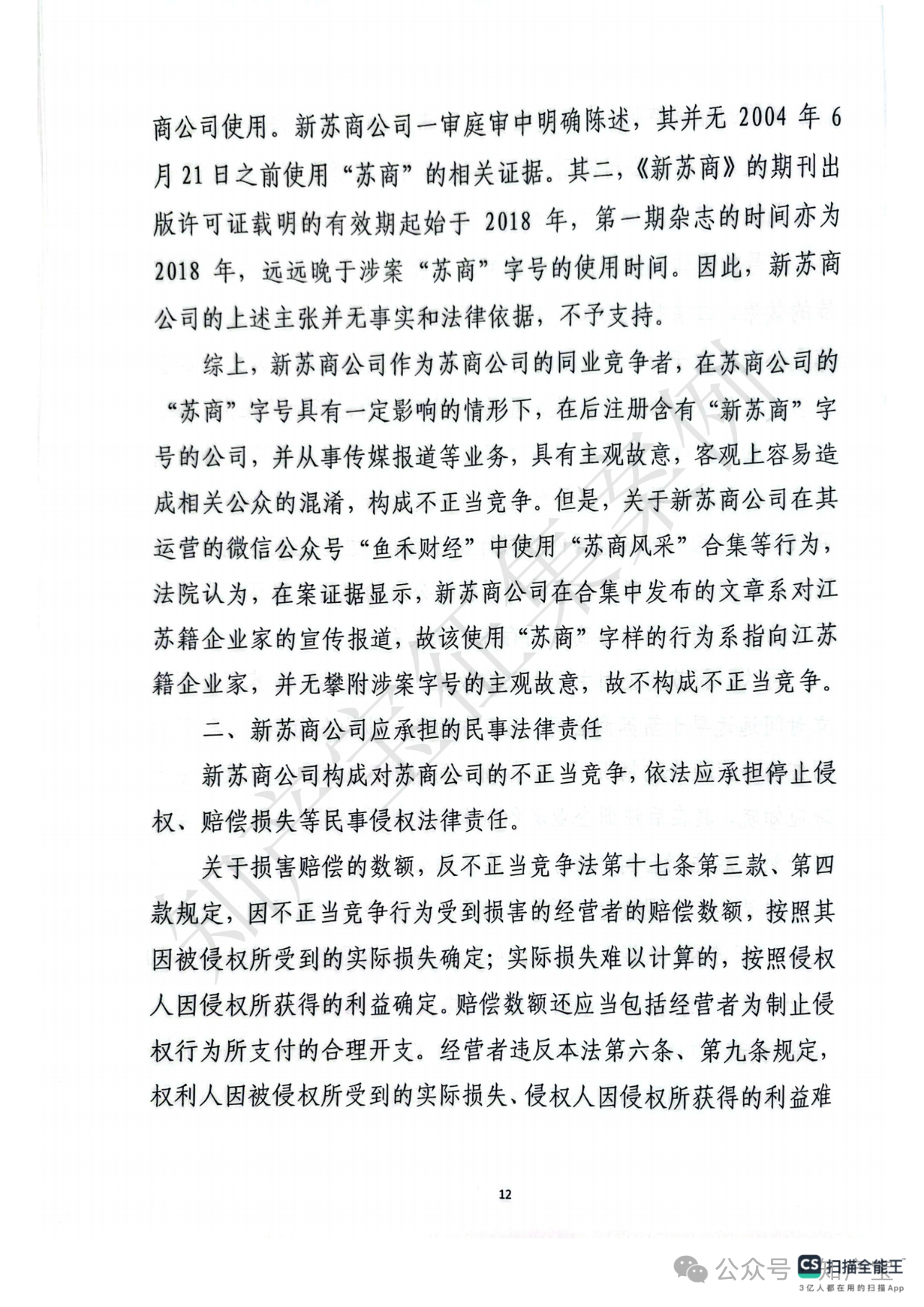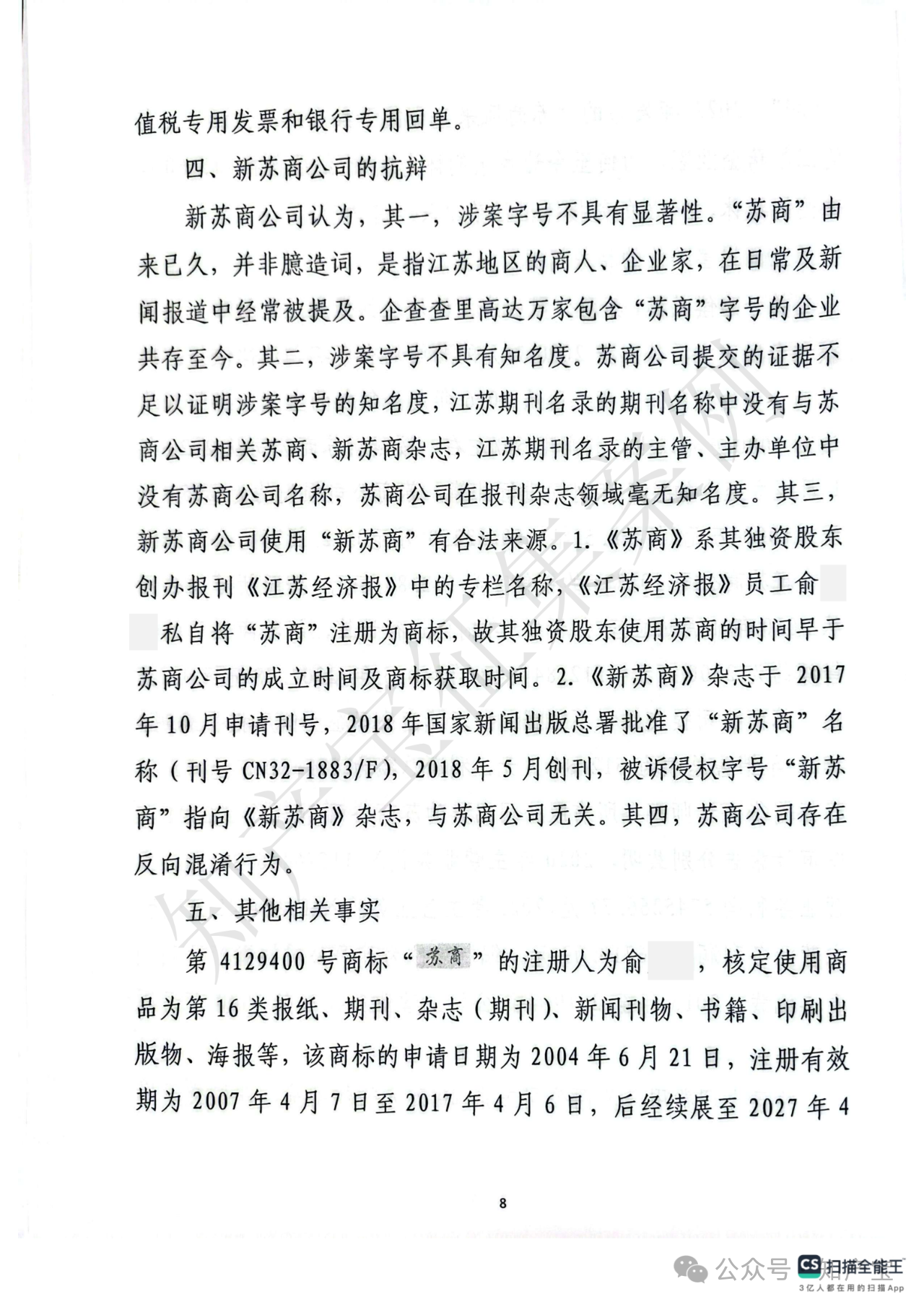 首先,关于江苏苏商传媒集团有限公司主张的“苏商”字号是否构成反不正当竞争法所保护的“有一定影响的企业名称”,江苏省高院认定“苏商”二字缺乏固有显著性,现有证据不足以证明该字号经苏商公司持续使用后已具备指代或识别其市场主体或服务来源的显著特征。在日常使用及新闻报道中,“苏商”通常被作为指代江苏商人或江苏企业的通用词汇,故苏商公司的“苏商”字号不属于具有一定市场知名度且能区分商品或服务来源的企业名称。其次,关于江苏新苏商文化传媒有限公司注册使用“新苏商”字号的正当性,法院认为其行为不具有攀附苏商公司商誉的故意:其一,新苏商公司系新华报业传媒因《新苏商》杂志采编与经营分离需要而独资设立;其二,虽新华报业传媒注册新苏商公司的时间晚于苏商公司注册“苏商”字号的时间,但新华报业传媒早于苏商公司注册前已在《江苏经济报》中使用“苏商”作为专栏名称宣传江苏商人及商界事件,后于2018年创刊《新苏商》杂志时选择“新苏商”作为名称,创刊词明确“新江苏呼唤新苏商、新时代造就新苏商”,赋予“新苏商”特殊含义及明确指向,旨在服务江苏民营企业与企业家发展。综上,新苏商公司使用“新苏商”字号具有合理背景与正当意图,主观无攀附故意,不构成反不正当竞争法规定的“擅自使用”他人有一定影响企业名称的不正当竞争行为。