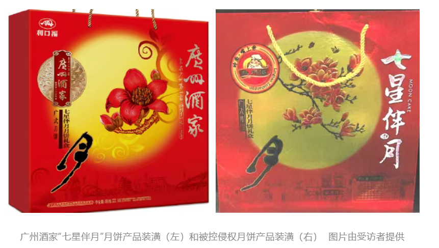 2022年8月,广州多家超市出售的“某师傅七星伴月”月饼礼盒引起了广州酒家的注意。“从图样来看,对方的月饼礼盒与我方的月饼礼盒都是将品牌镶嵌到圆形中,两者的装潢方式高度一致,而我方权利装潢经过持续运营和推广,已构成有一定影响的商品装潢。若消费者通过装潢识别商品,会认为对方的月饼与广州酒家存在特定联系。我们认为对方的行为是一种抄袭和模仿行为,涉嫌构成不正当竞争。”广州酒家代理人、广东三环汇华律师事务所律师董咏宜在接受中国知识产权报记者采访时表示。