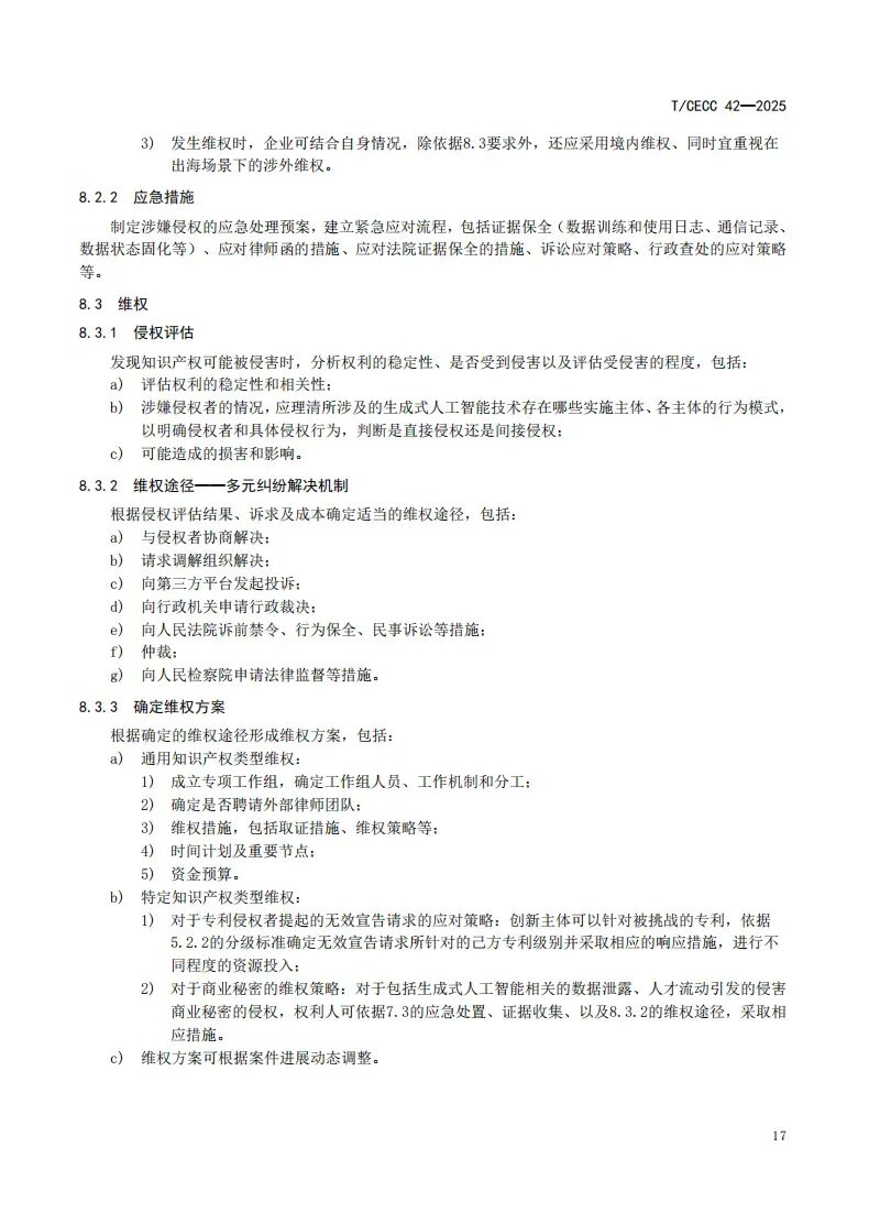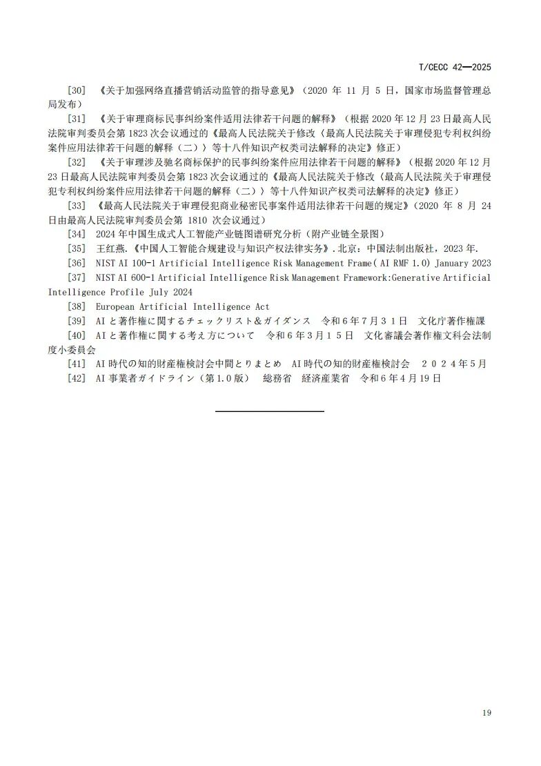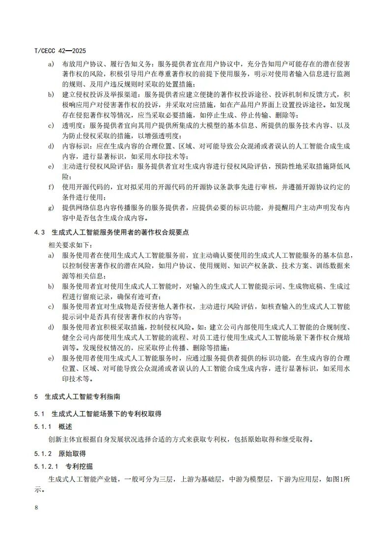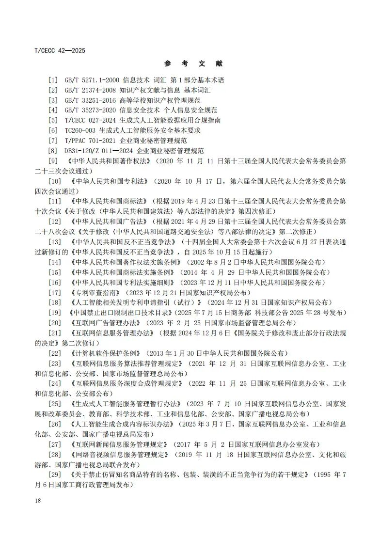 更多 >>近日,中国电子商会正式发布国内首部聚焦生成式人工智能领域的知识产权团体标准——《生成式人工智能知识产权指南》(T/CECC 42-2025)(以下简称《标准》)。该《标准》作为“标准化+市场监管”团体标准典型案例在海淀区第56届“世界标准日”主题活动暨第四届标准创新大会上进行展示。