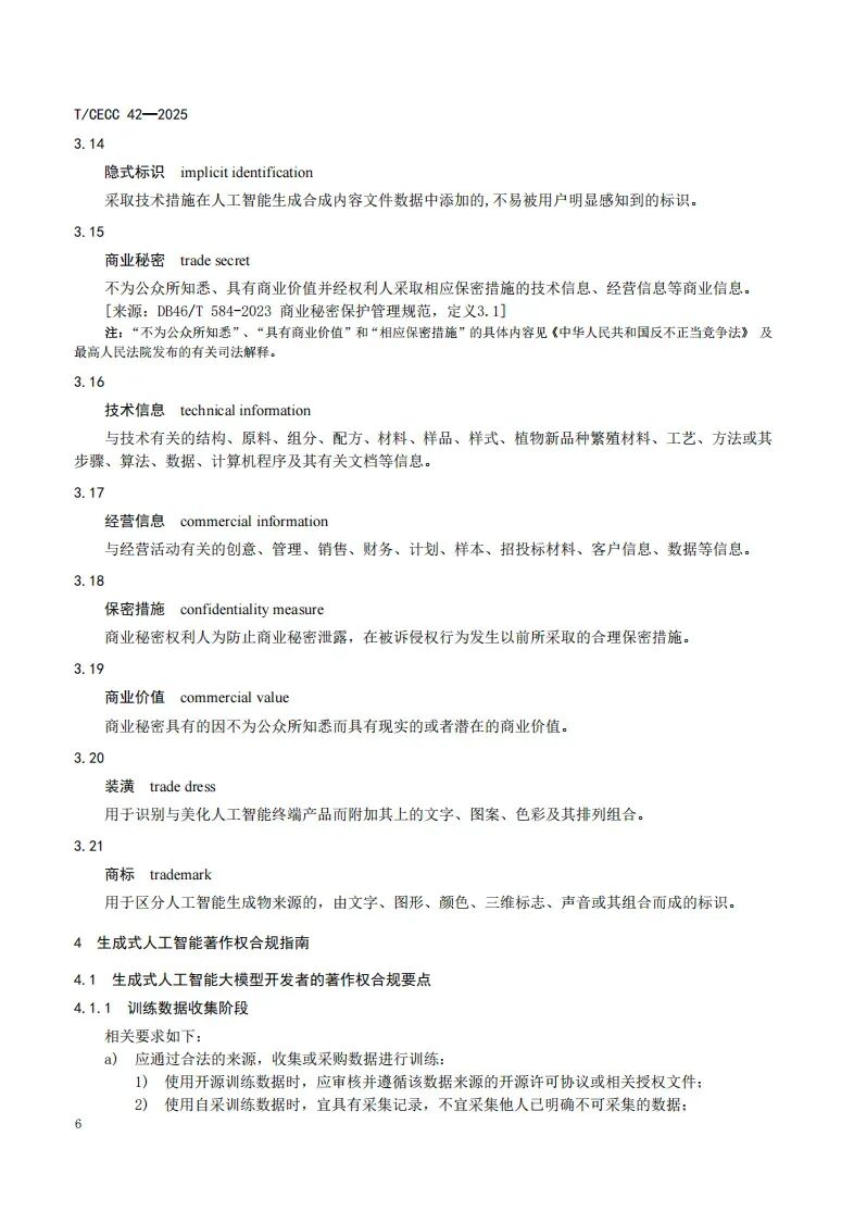 《标准》围绕生成式人工智能技术开发、应用与合规管理中的关键议题,规定了知识产权合规管理和保护的基本要求,构建了涵盖著作权、专利、标识和商业秘密四大核心领域的获取、应用与风险管理框架,聚焦人工智能场景下责任权属模糊、算法专利判定复杂等突出问题,以创新规则填补前沿领域空白,突出了系统性、实用性与前瞻性。