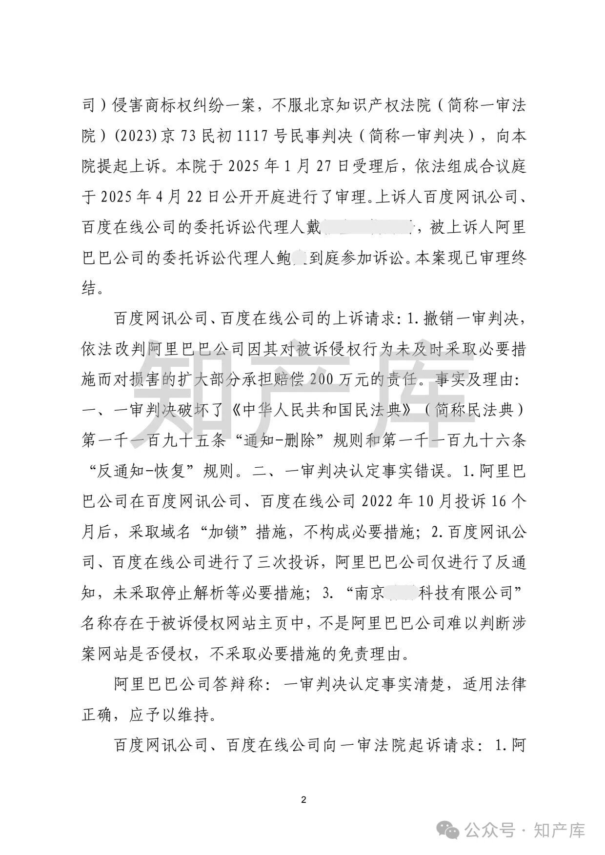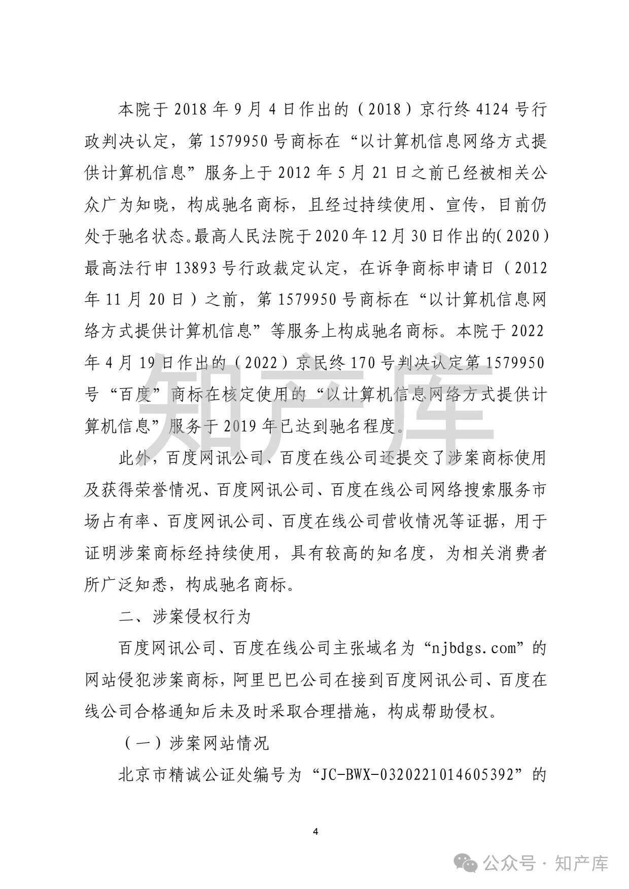 百度诉阿里商标侵权案 二审判决书