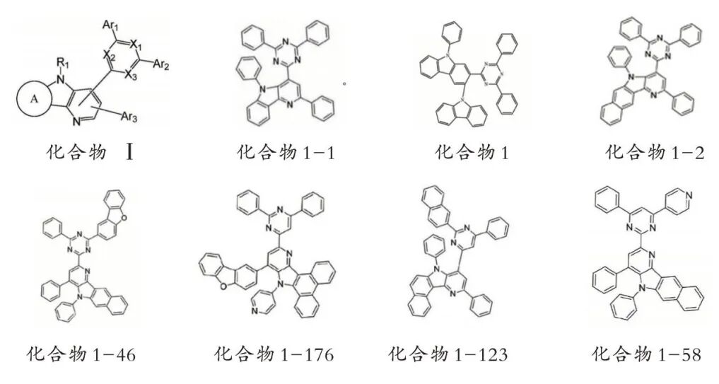 涉案专利的权利要求1请求保护一种三嗪类化合物,其特征在于,其分子结构通式如 I所示:其中,对于 A、Ar1、Ar2、Ar3、X1-X等做了进一步的基团定义。