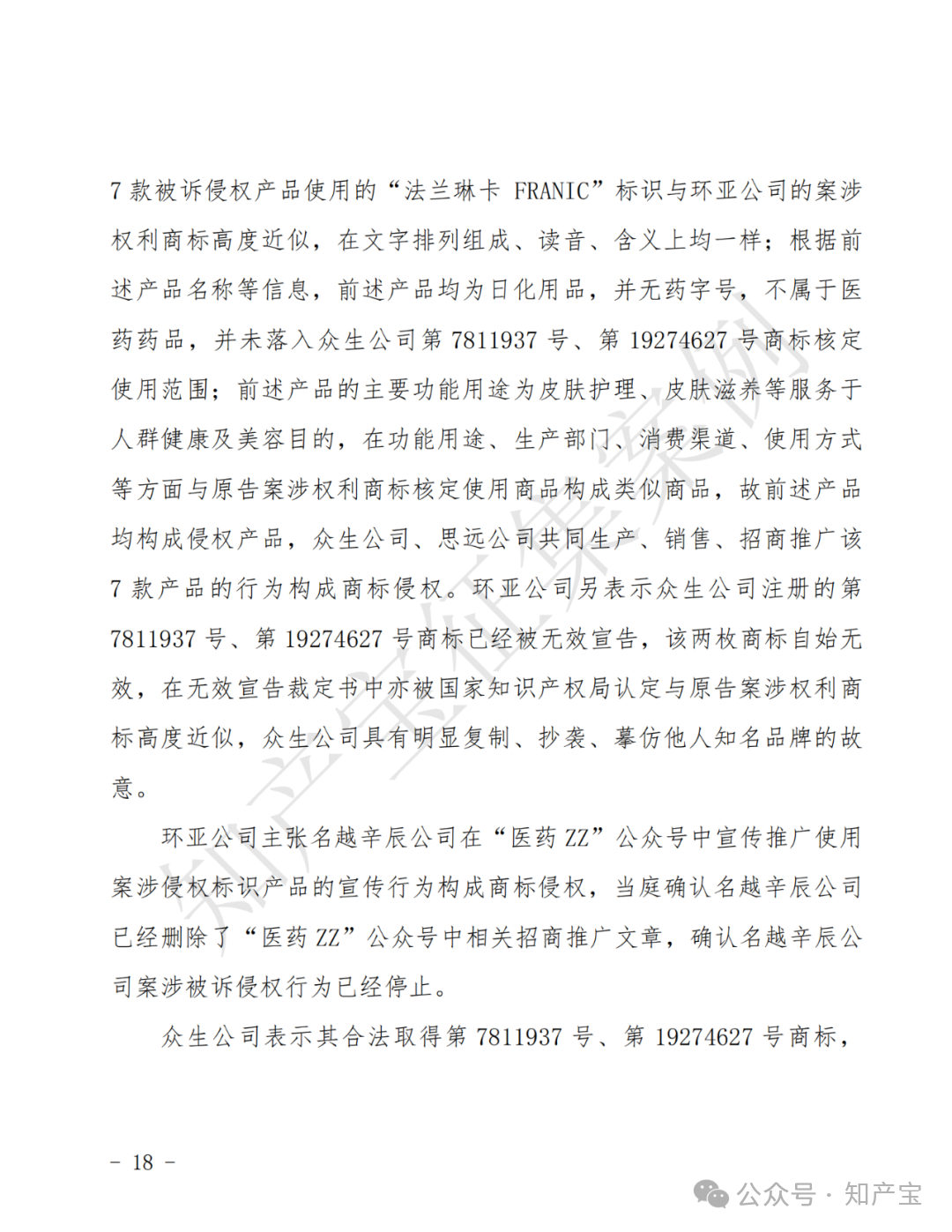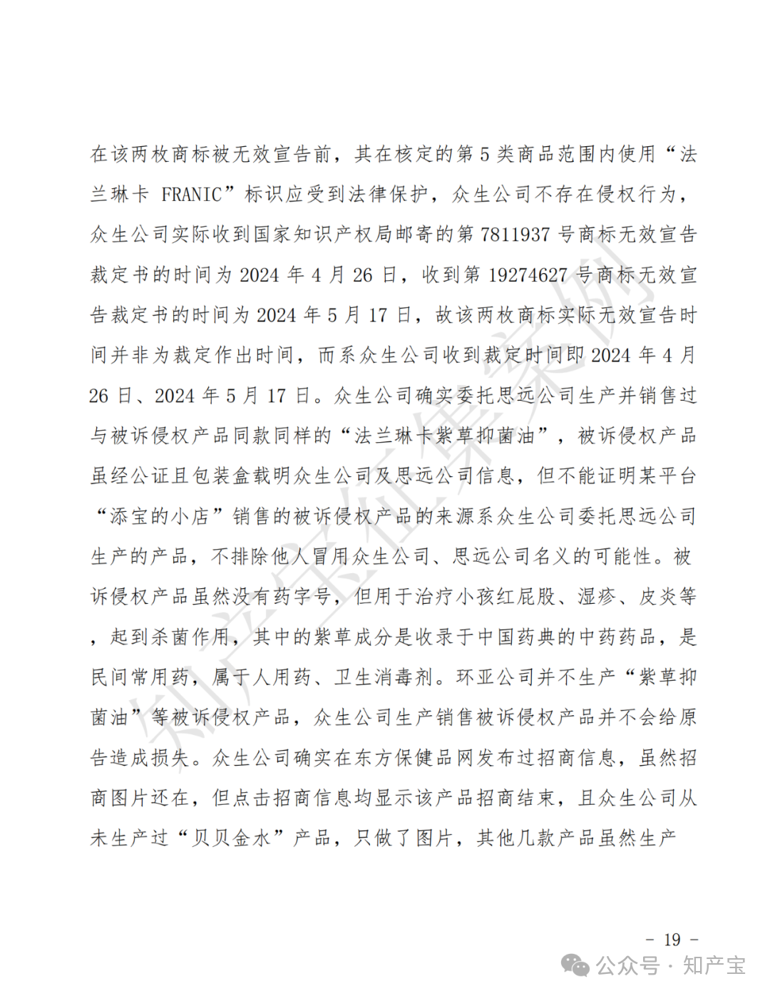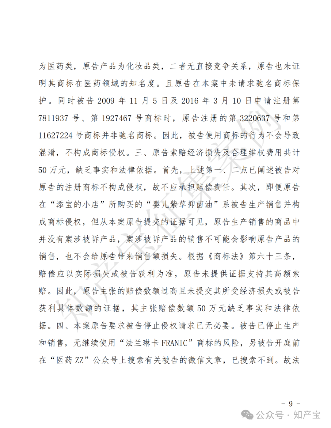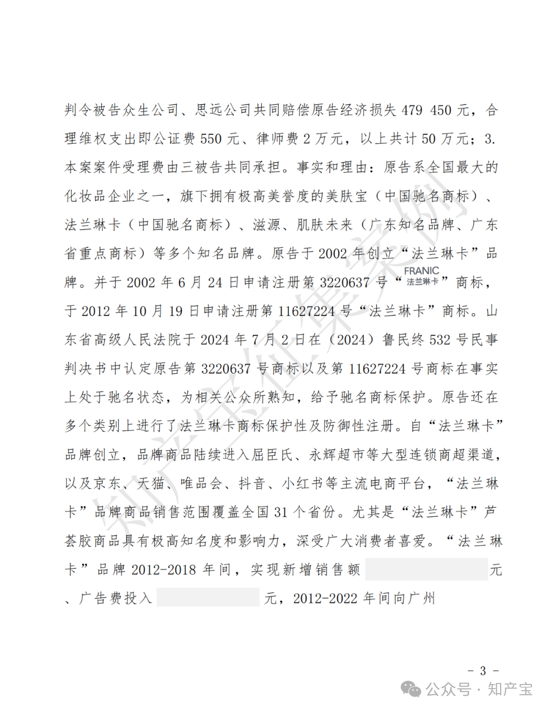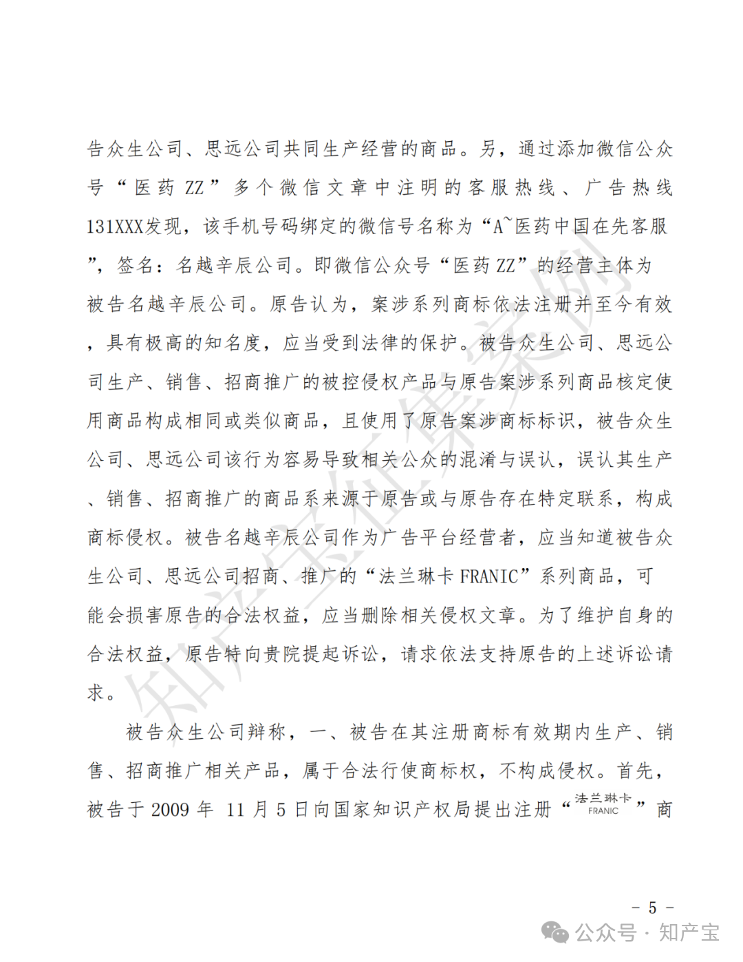 药品同名侵权,“法兰琳卡”维权胜诉 一审判决书