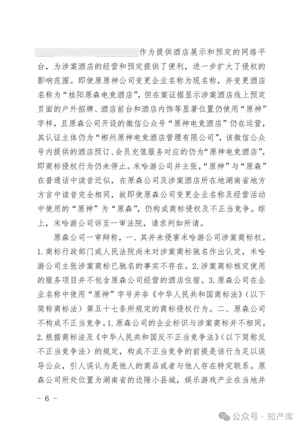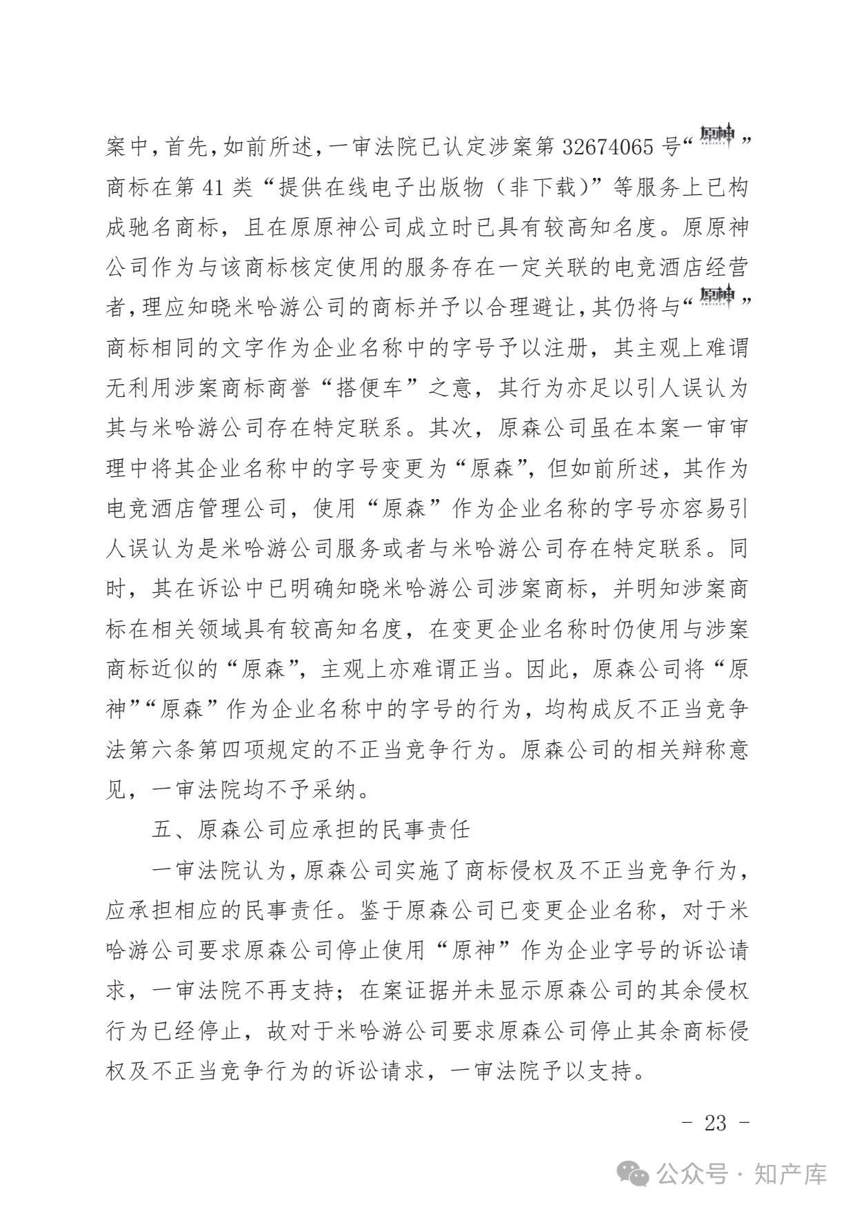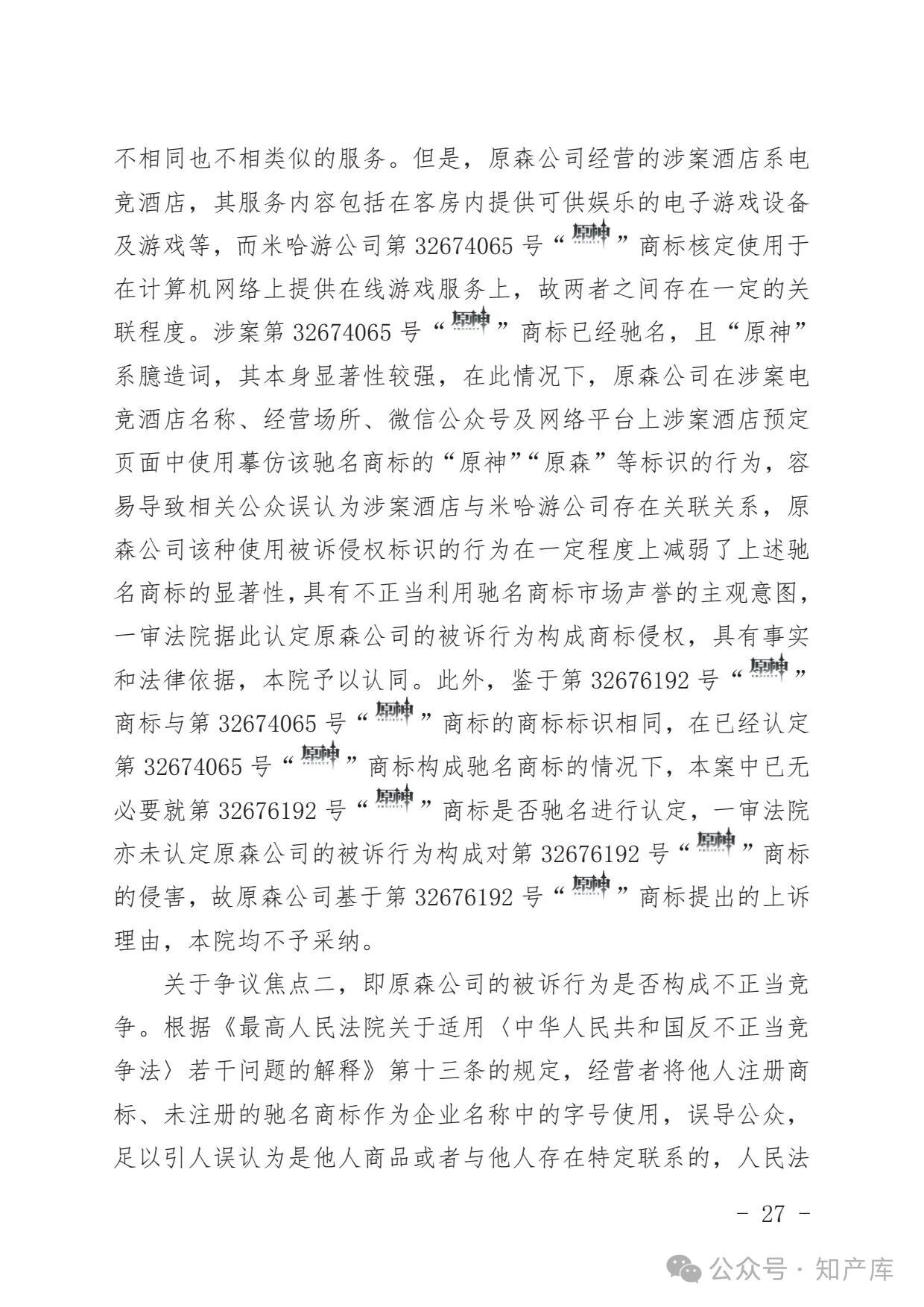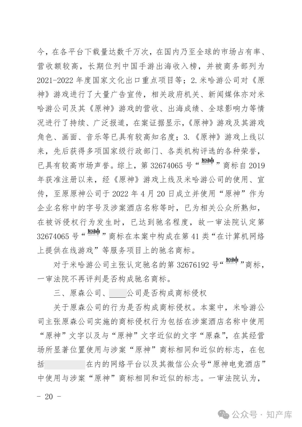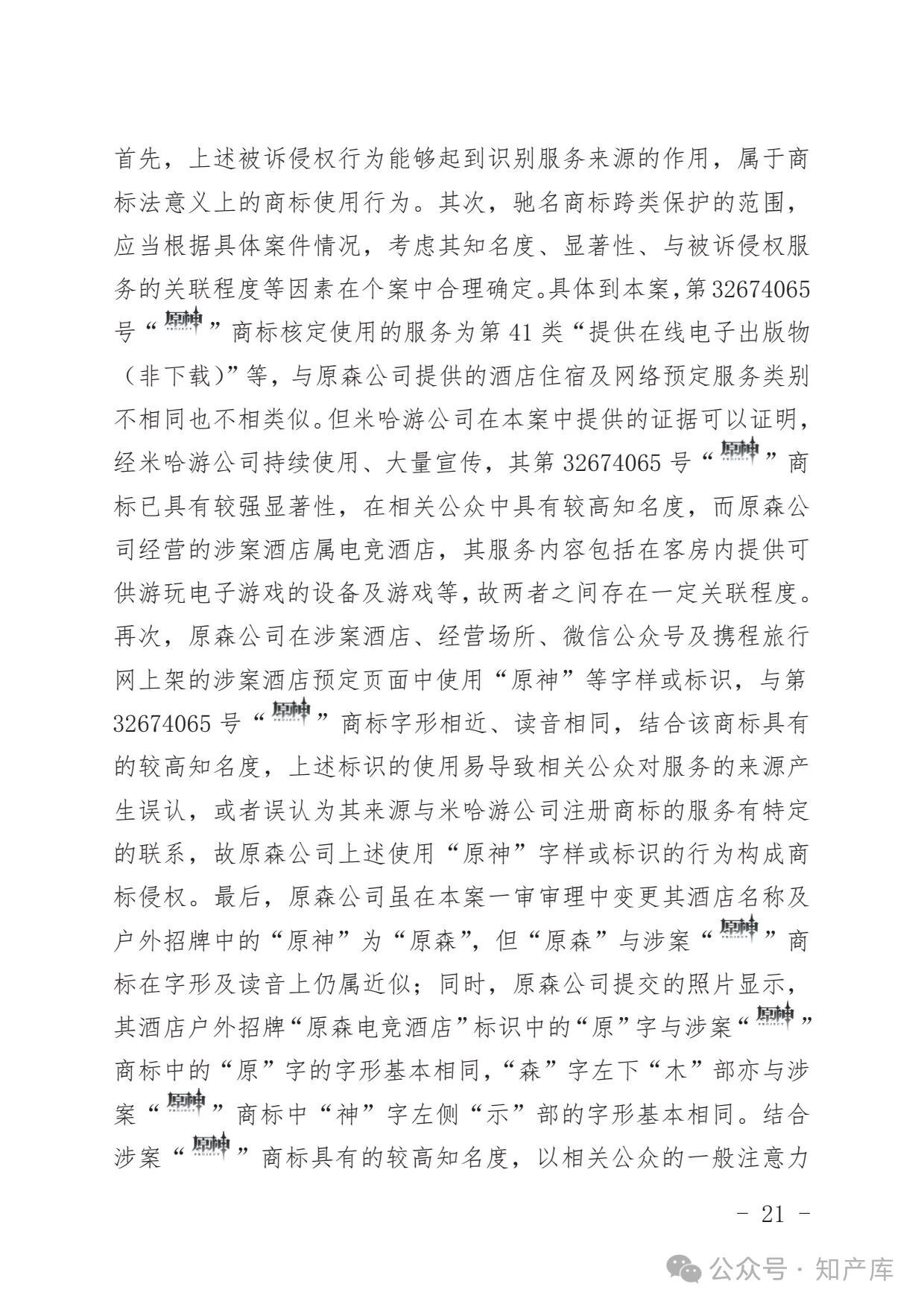 原神游戏vs原神酒店驰名商标案二审判决书