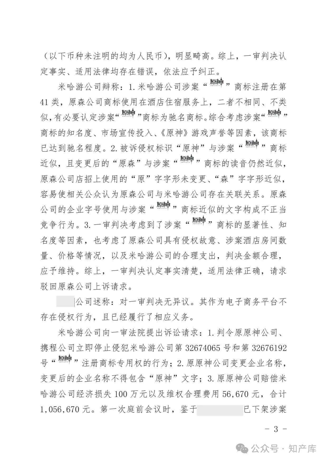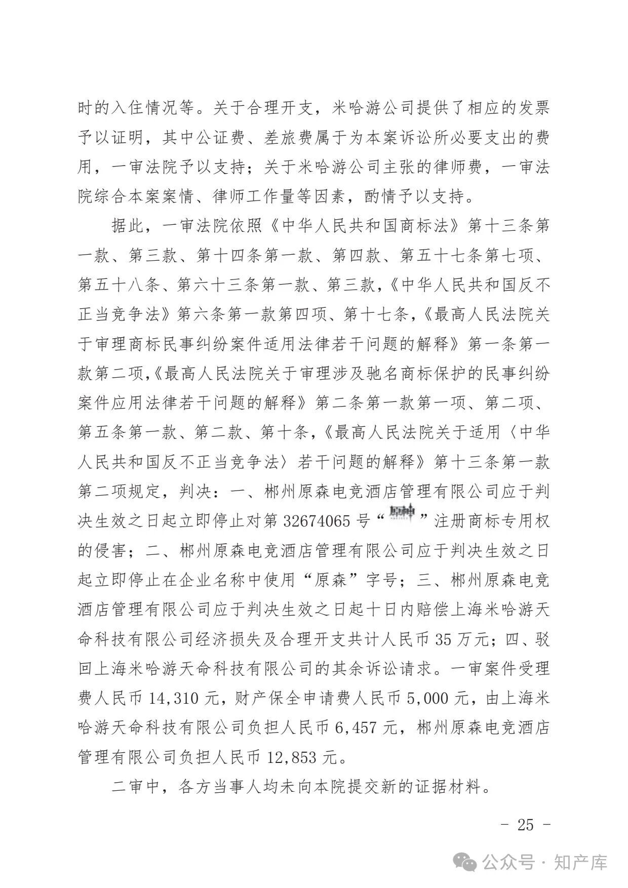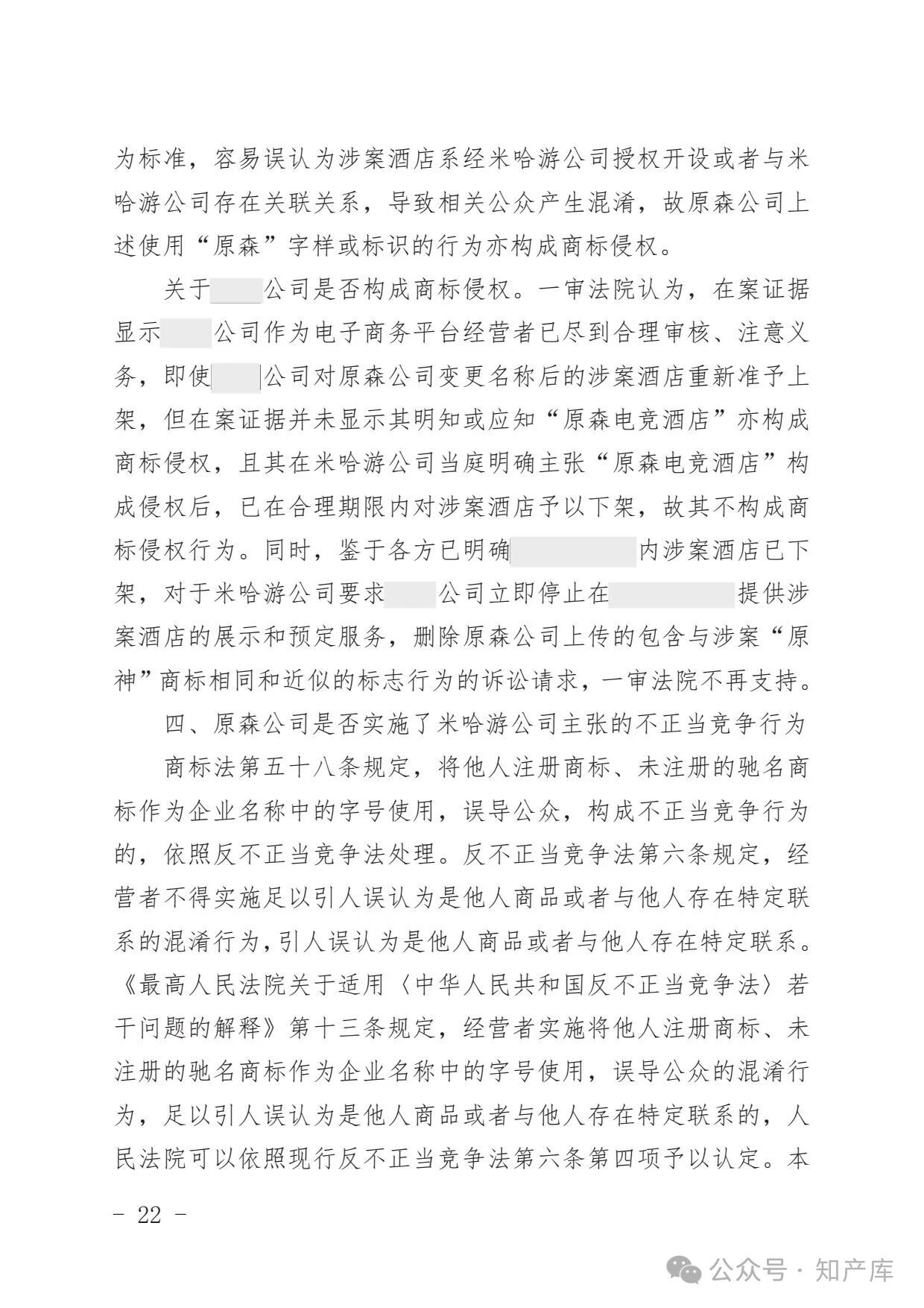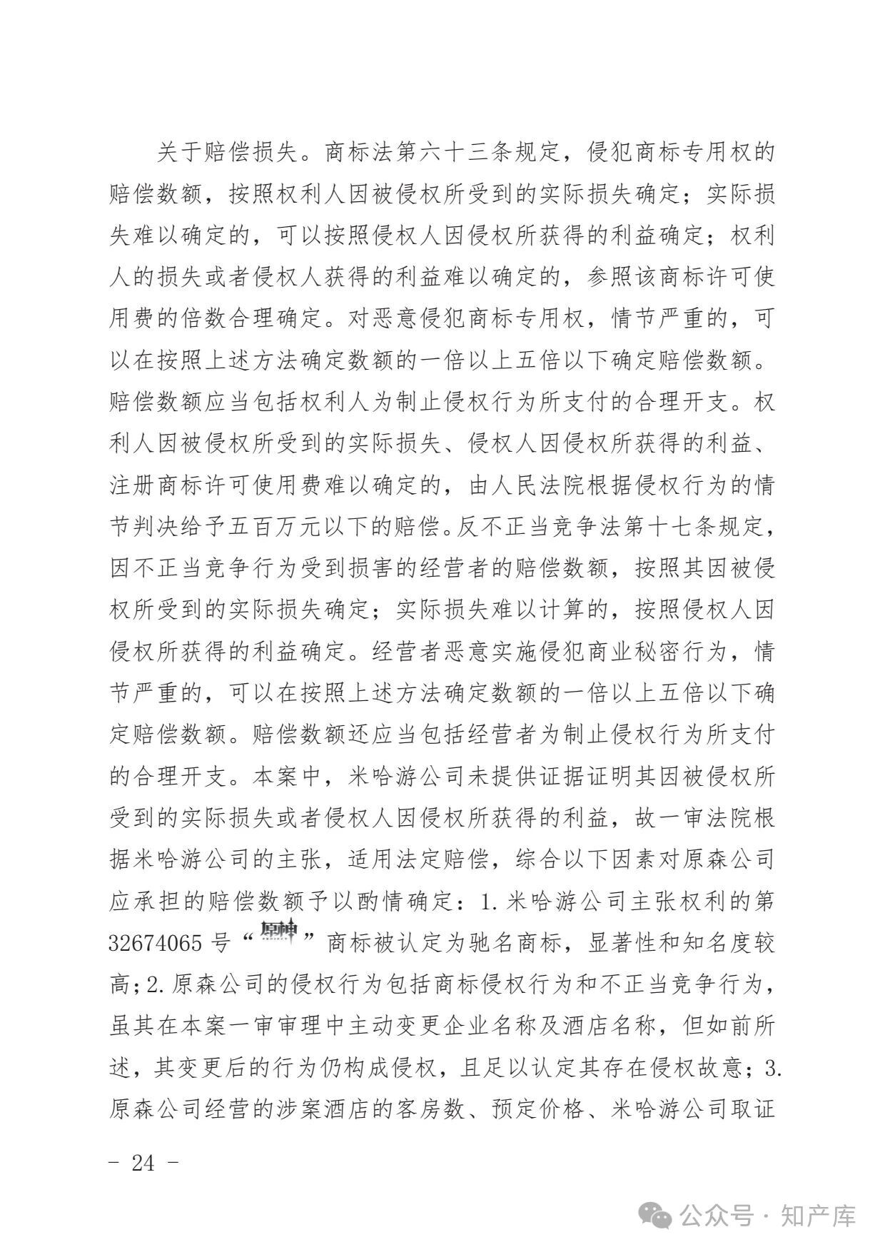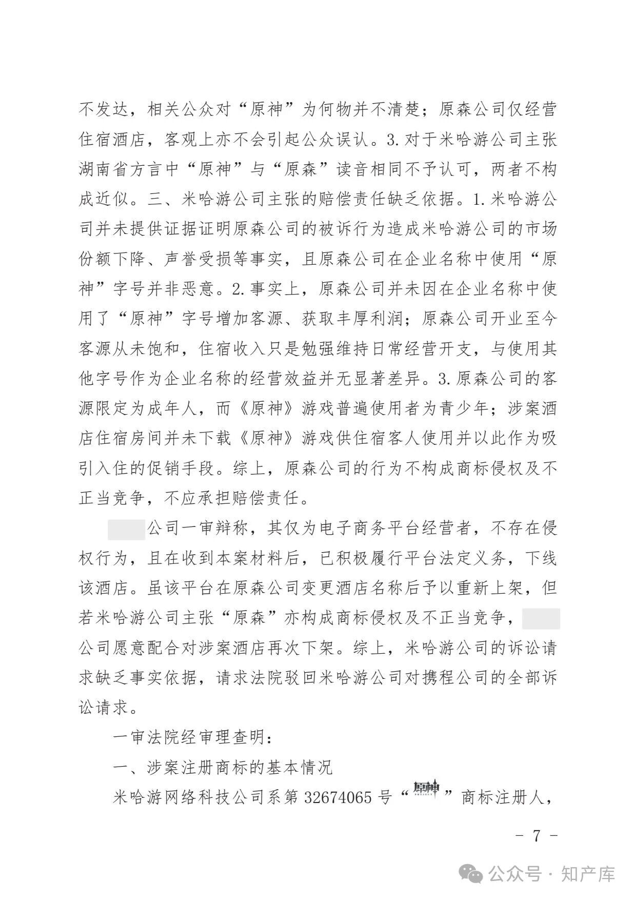 原神游戏vs原神酒店驰名商标案二审判决书