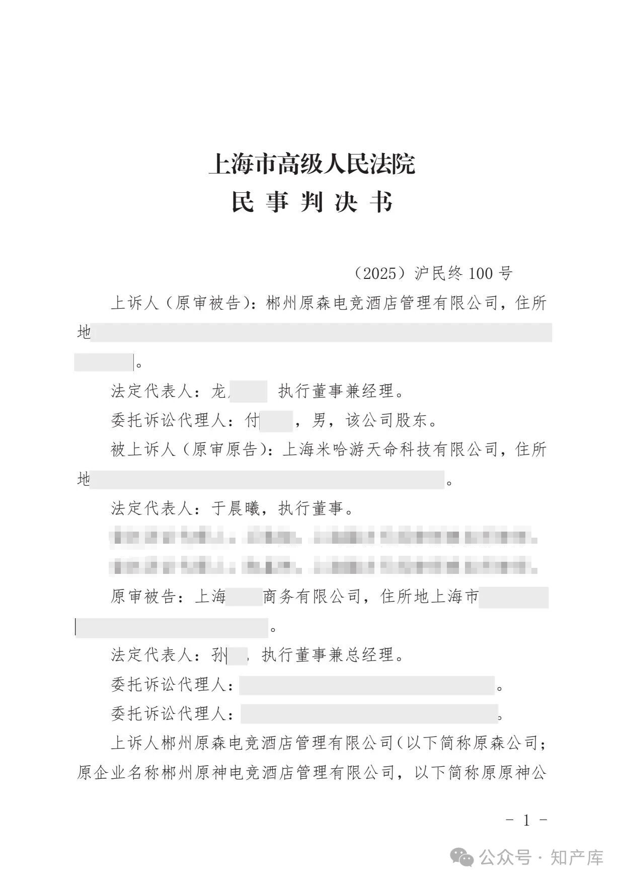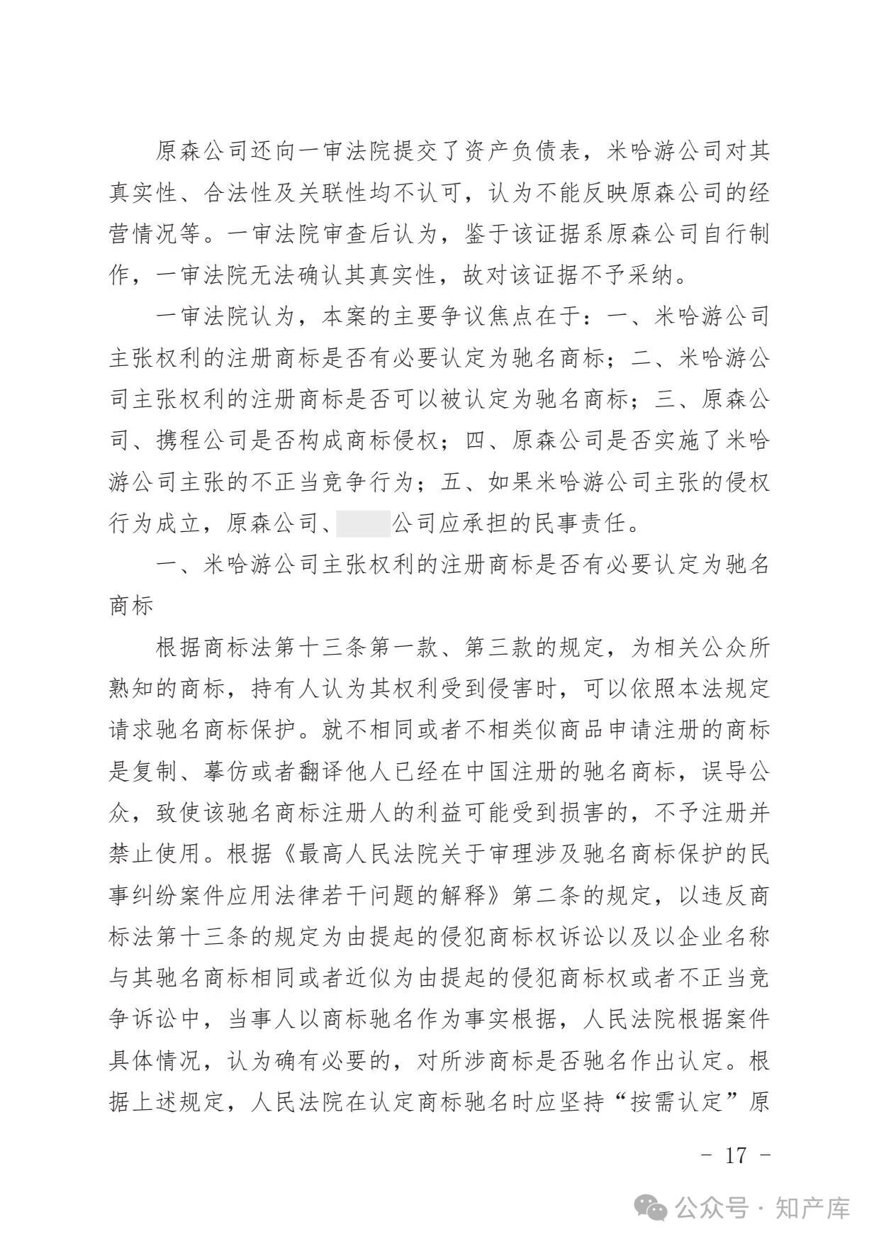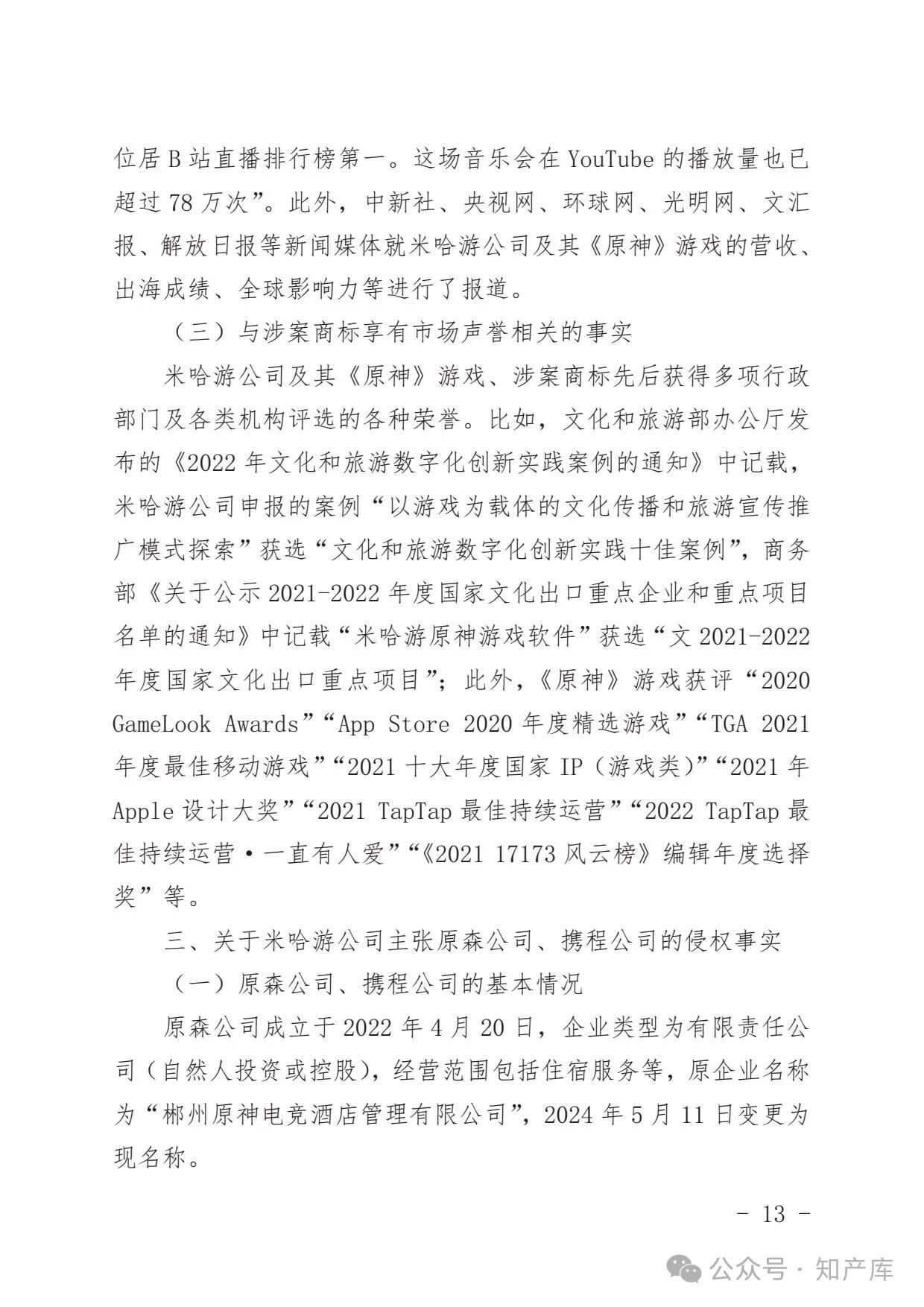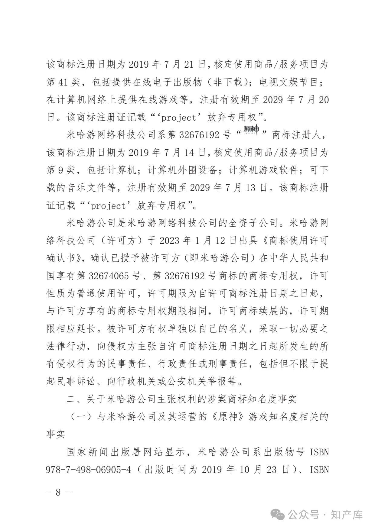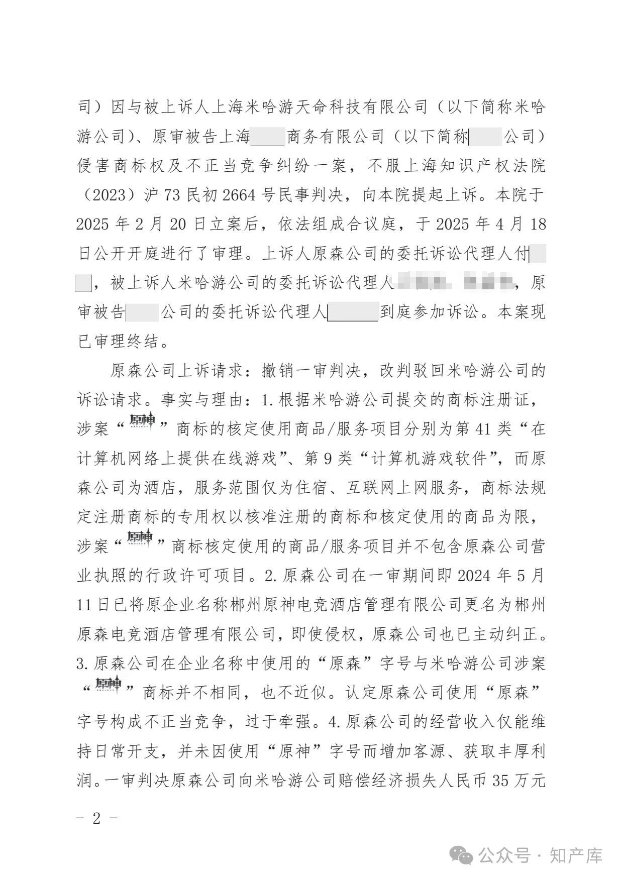 原神游戏vs原神酒店驰名商标案二审判决书