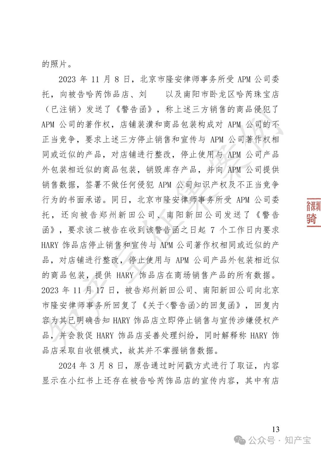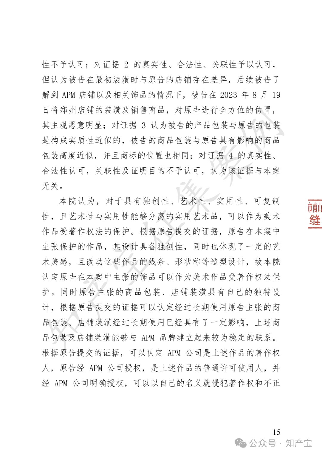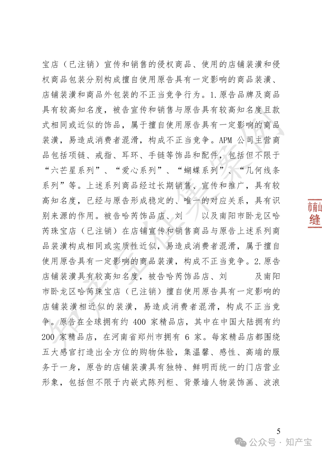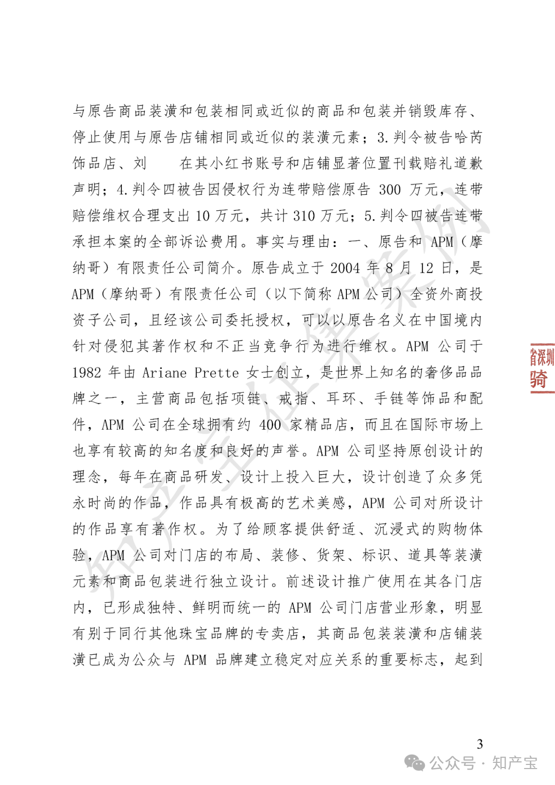 APM独特的店铺装潢和商品包装获反法保护,APM饰品设计获著作权保护 一审判决书原文