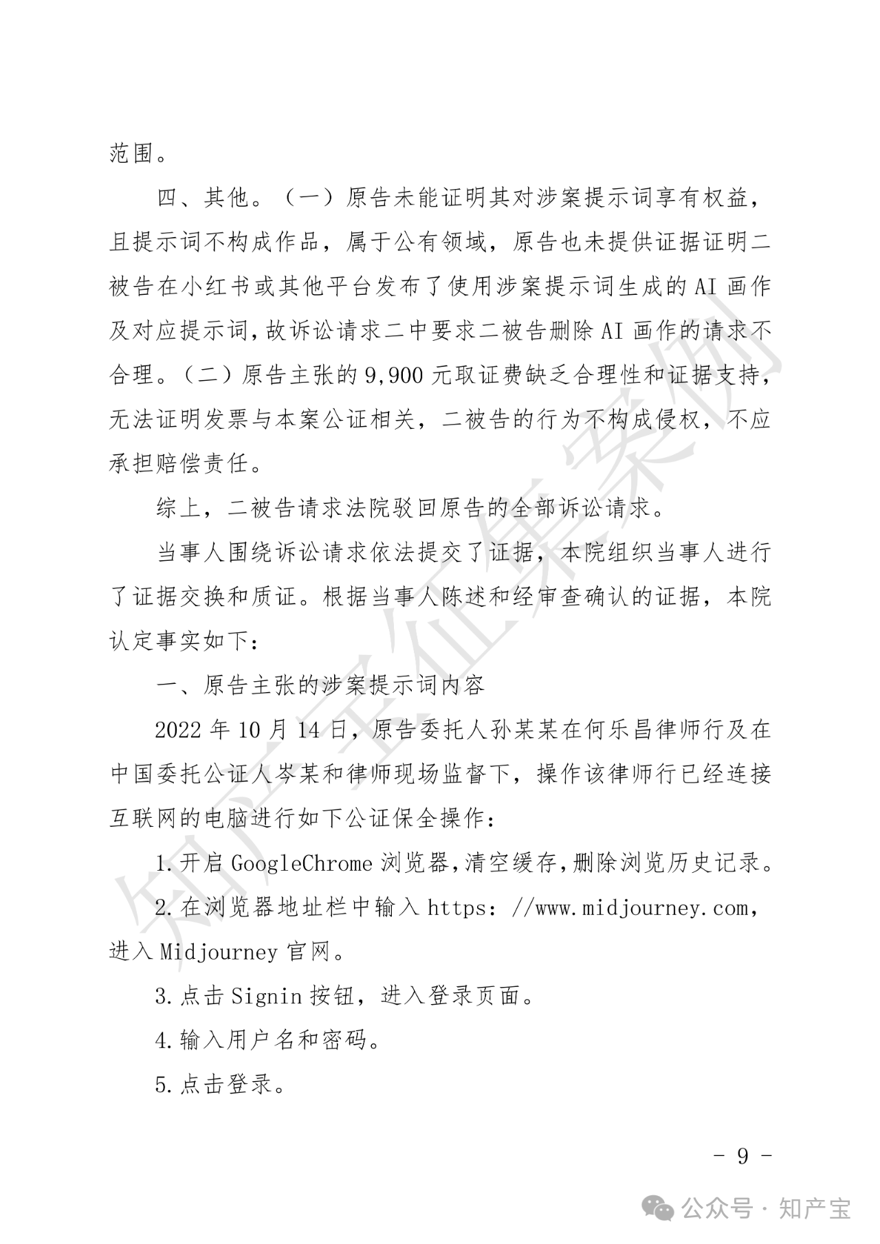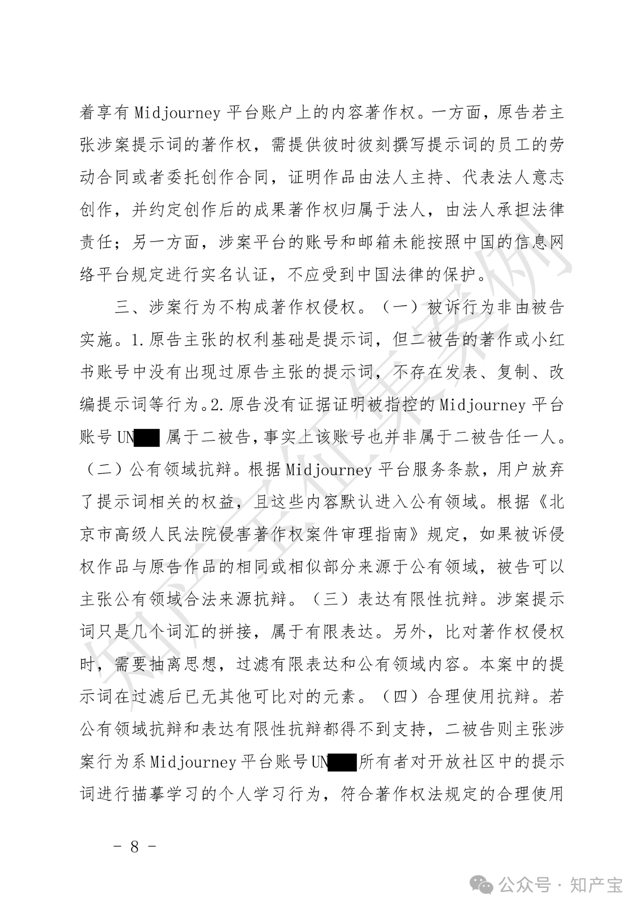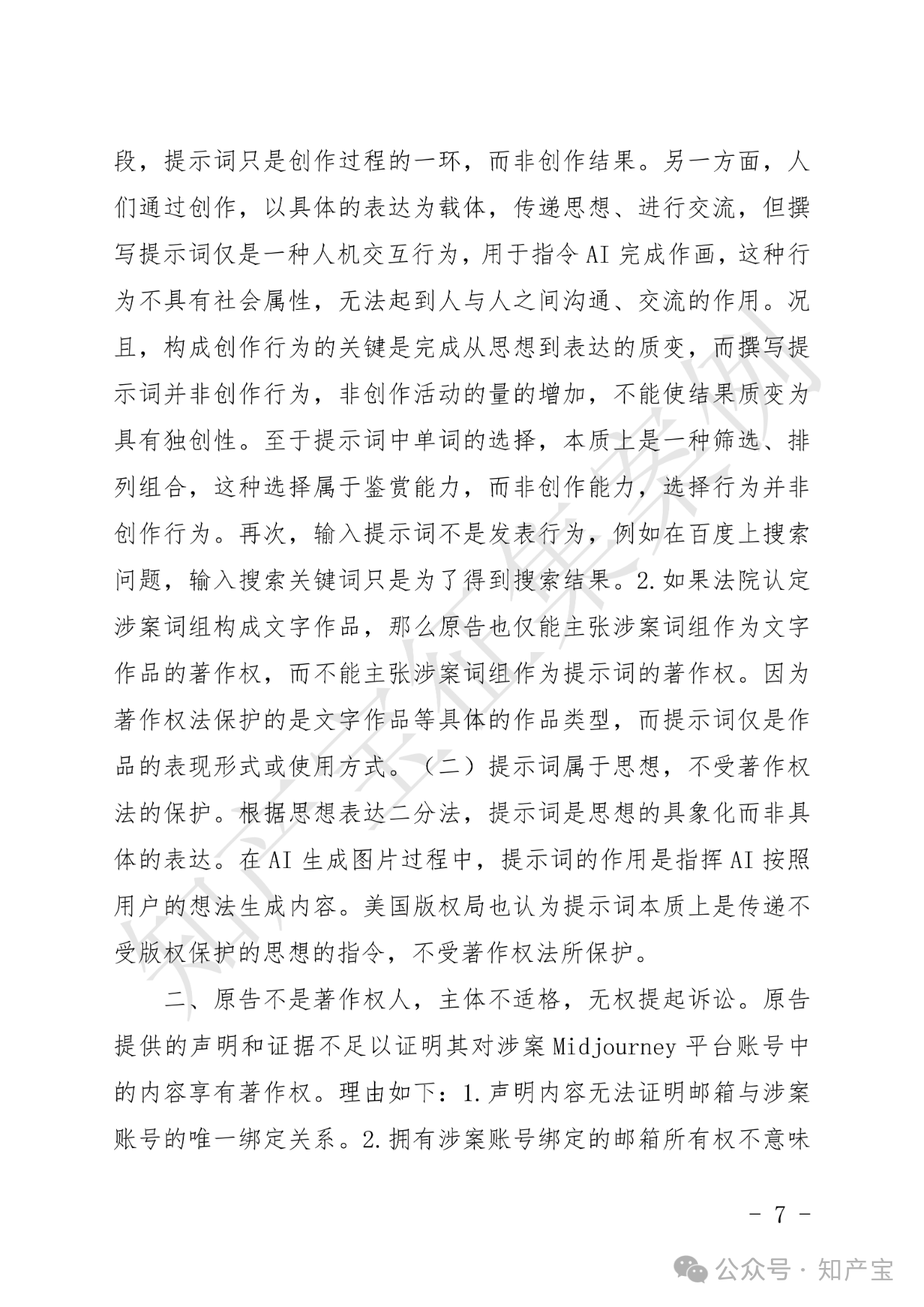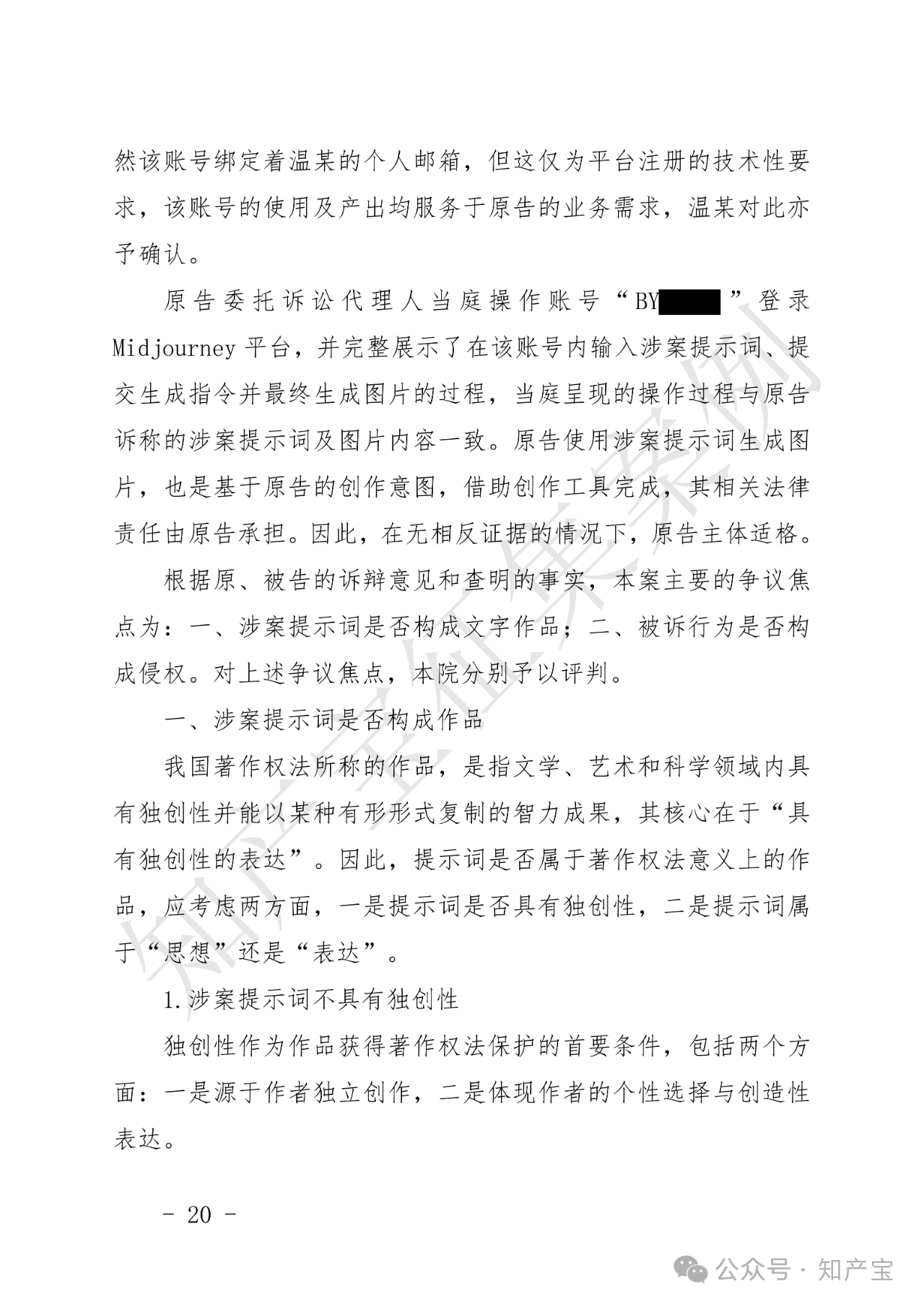 “AI生成图被侵权”著作权纠纷案一审判决书