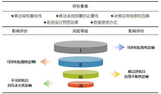 (1)明确影响评价要素。当前各国在算法影响评估的实践为司法裁判提供一定的有益探索,可参考构建算法影响评价体系,将法律原则以评估要素的形式融入到算法设计和行业应用规范中,以更好的寻求法律规制和技术创新之间的动态平衡点。对此,可基于诉辩双方对案涉竞争行为所产生的积极影响与消极影响进行比较,结合算法架构复杂性、算法系统部署的必要性、决策应用场景和范畴、系统设计预想效果、数据使用方式等指标,参考加拿大《自动化决策指令》的4个风险等级,评定竞争行为对经营者、消费者及社会公众所产生的影响,具体如下: