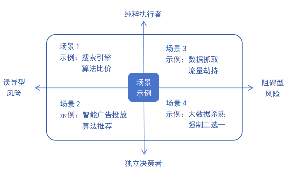 基于前述场景化框架,可进一步展开横向坐标中误导型风险及阻碍型风险,将算法不正当竞争行为分为以下两大类: