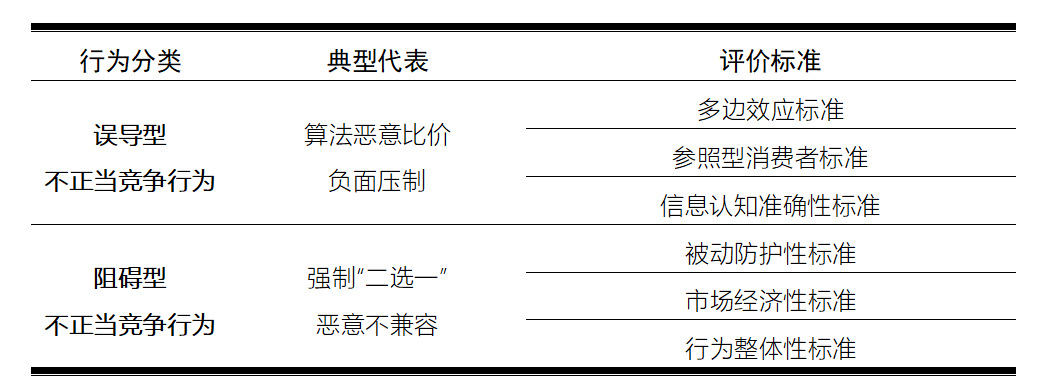 表3:涉数字平台算法不正当竞争行为的类型化及其评价标准
