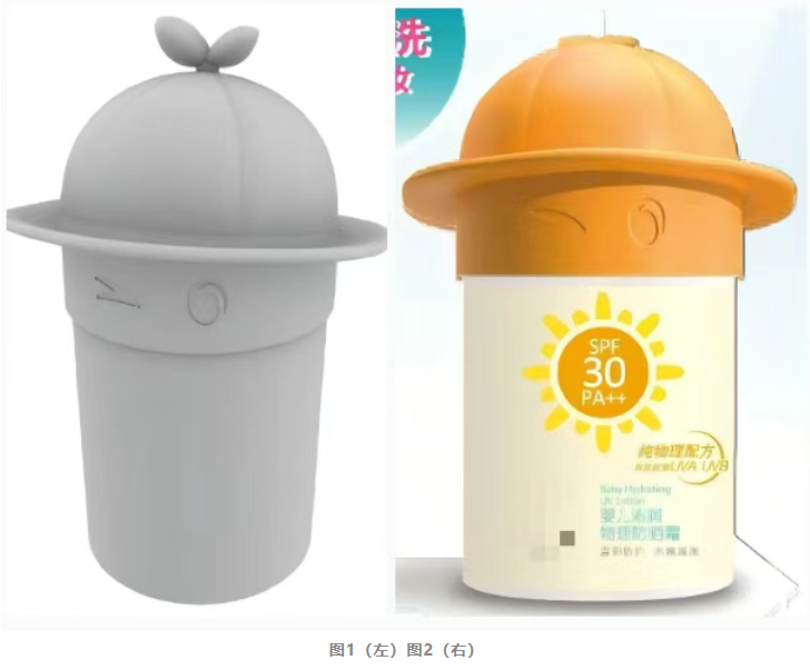 通过比对发现,丁公司的两个版本,修改之处为颜色方面,即从“白色透明”修改为“半透明浅黄色”;增加之处为帽子底部出现隐约可见的六边形,顶部在原有六边形的基础上出现二氧化钛的分子式。考虑到涉案产品瓶盖颜色即为黄色,且二氧化钛的晶体结构平面图即为正六边形形态,以其为主要成分系甲公司产品的卖点之一,故丁公司与甲公司就宣传图的沟通确定及修改、增加之内容与原有设计方案高度关联且具有合理性,并非对最初的设计方案进行重大调整。因此,虽然乙公司系于2024年1月4日至甲公司处展示设计方案,但不能因此证明甲公司实施剽窃行为。