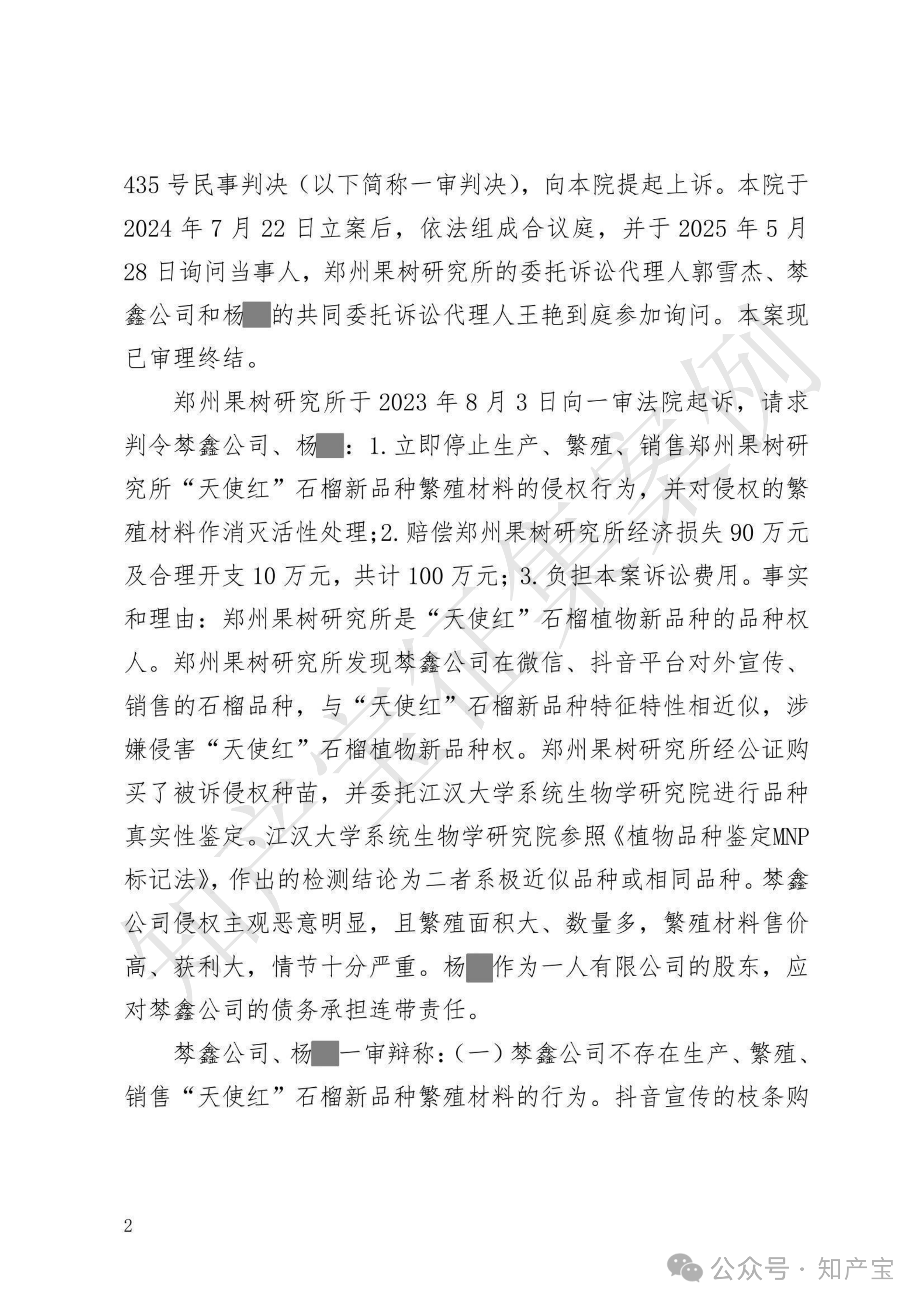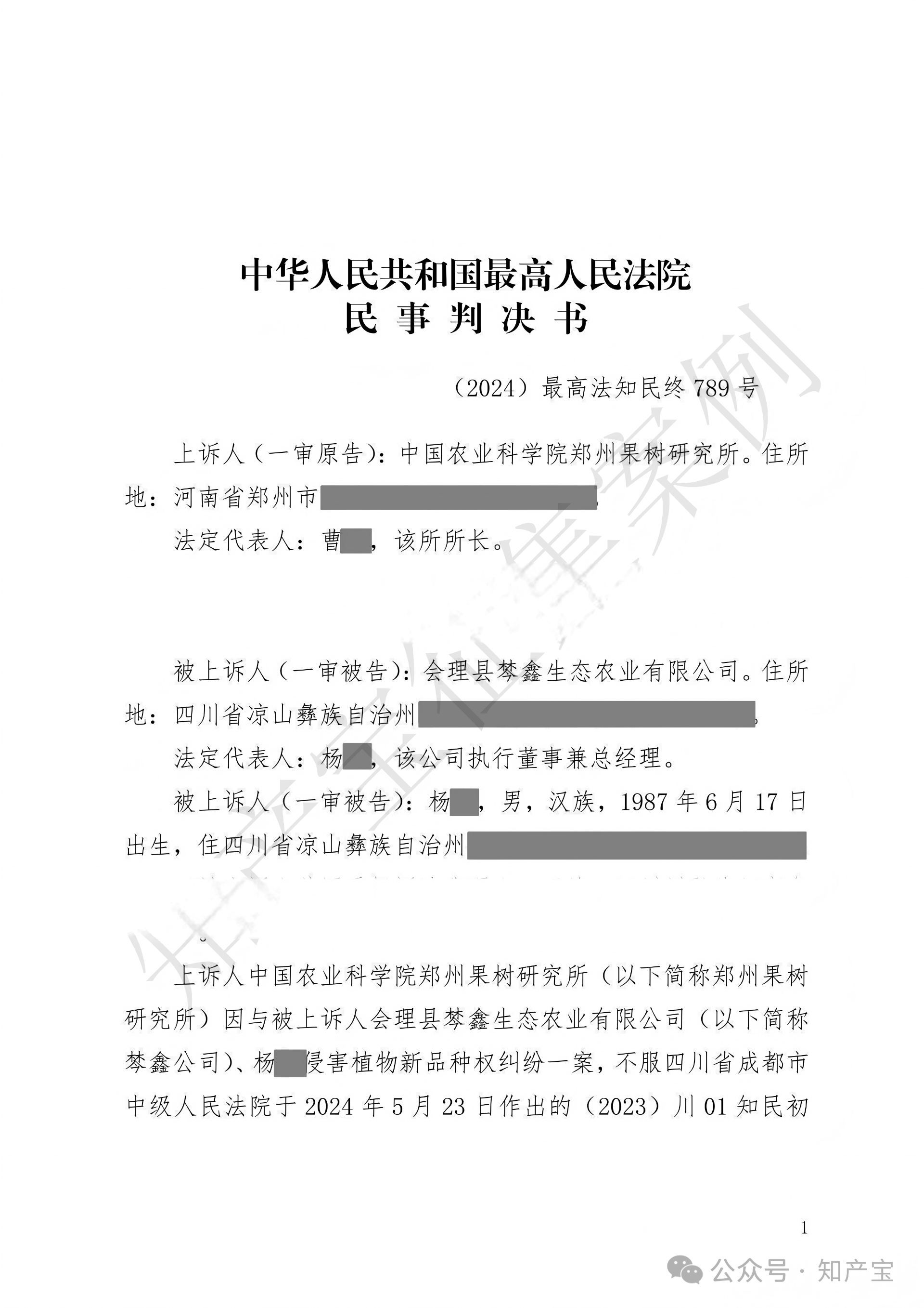 更多 >>中国农业科学院郑州果树研究所(下称“郑果所”)系“天使红”石榴植物新品种权人。会理县棽鑫生态农业有限公司(下称“棽鑫公司”)及杨某未经许可,生产、繁殖、销售与“天使红”特征相同的石榴繁殖材料。郑果所主张其行为构成侵权,诉至成都市中级人民法院。一审中,法院驳回郑果所全部诉讼请求。郑果所不服,向四川高院提起上诉。
