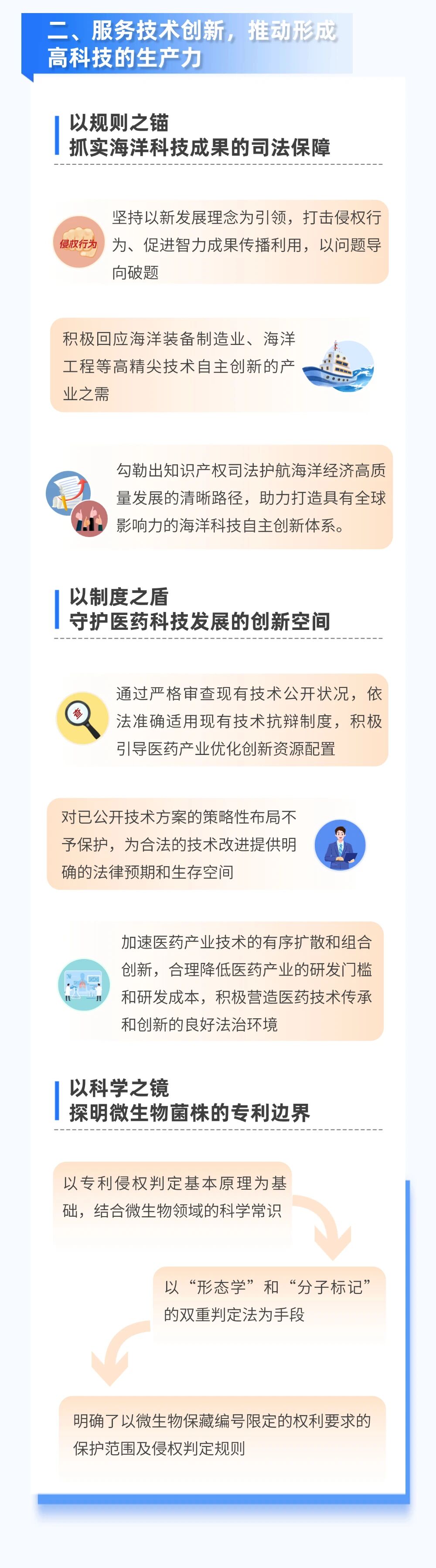 在服务技术创新方面,该院持续加大对基础研究和原始创新的司法保护力度,围绕海洋科技、生物医药、微生物技术等重点领域,通过明确裁判规则强化对关键核心技术及原始创新的保障服务。