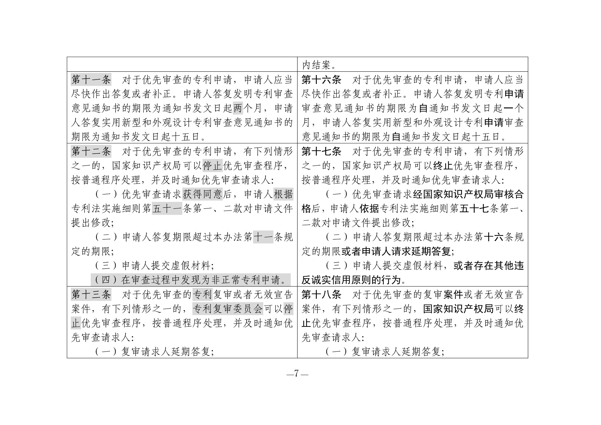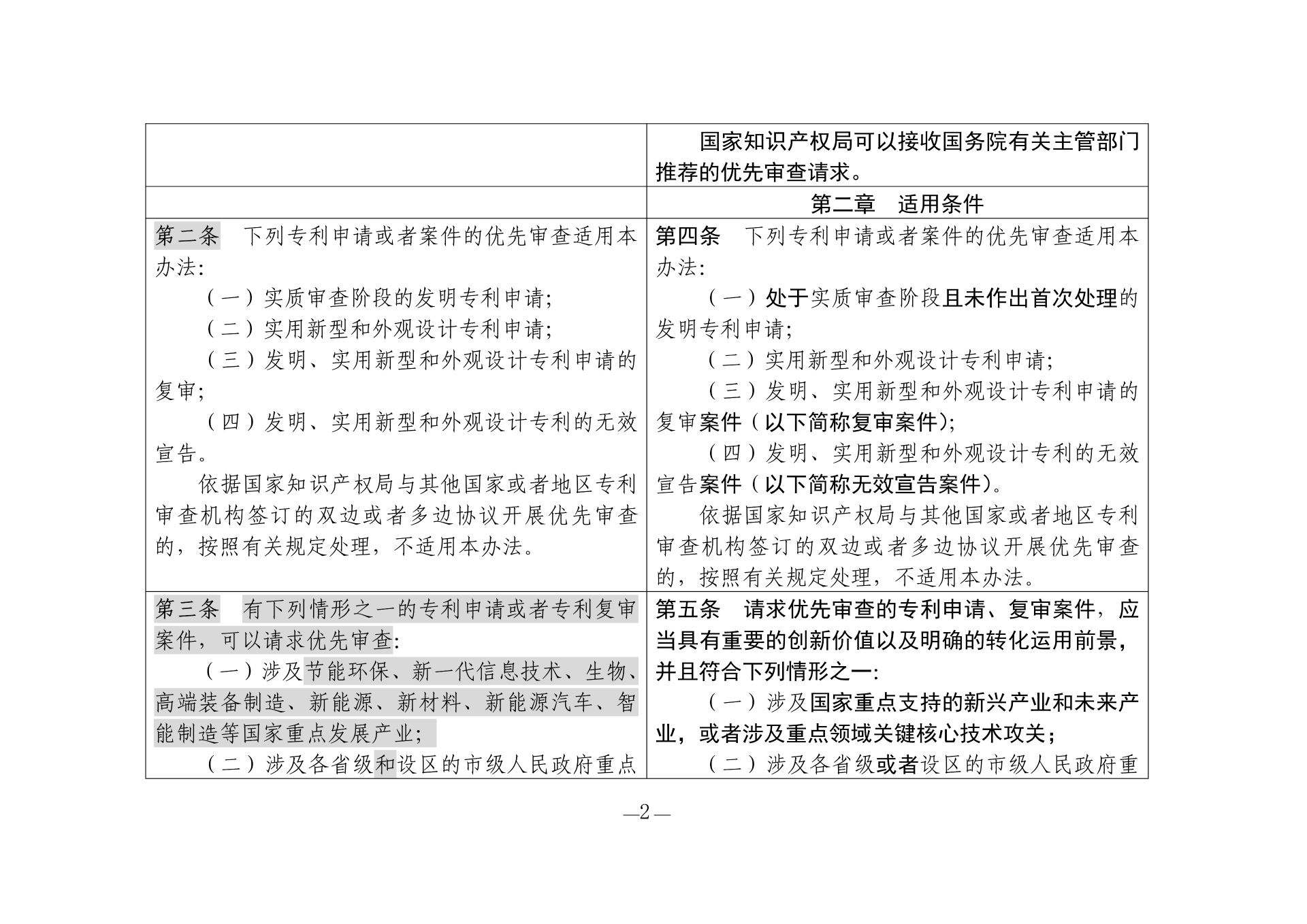《专利优先审查管理办法修改草案(征求意见稿)》修改对照表