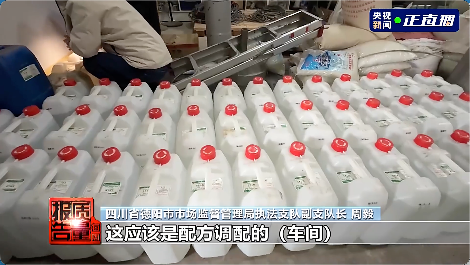 进一步调查显示,山西文水县武后乡酒业有限公司的负责人裴某在未取得食品生产许可的情况下,购进食用酒精、纯净水以及食用香精、乳酸乙酯等添加剂,勾调生产配制酒冒充白酒。仅在2024年3月至2025年10月一年多的时间里,裴某就先后购进食用酒精2912.75吨,购入辅料约75000升,非法生产各种“老酒”。