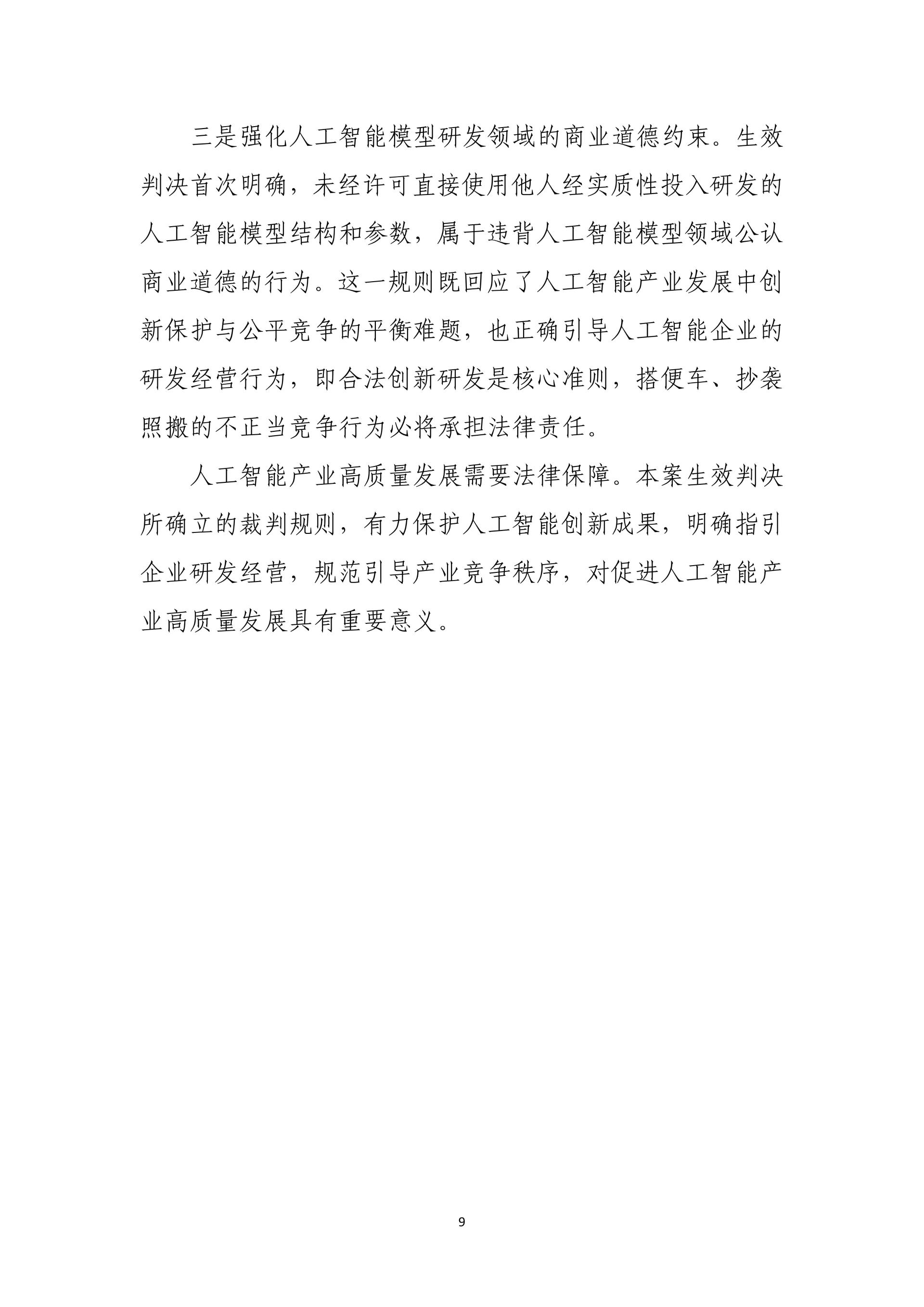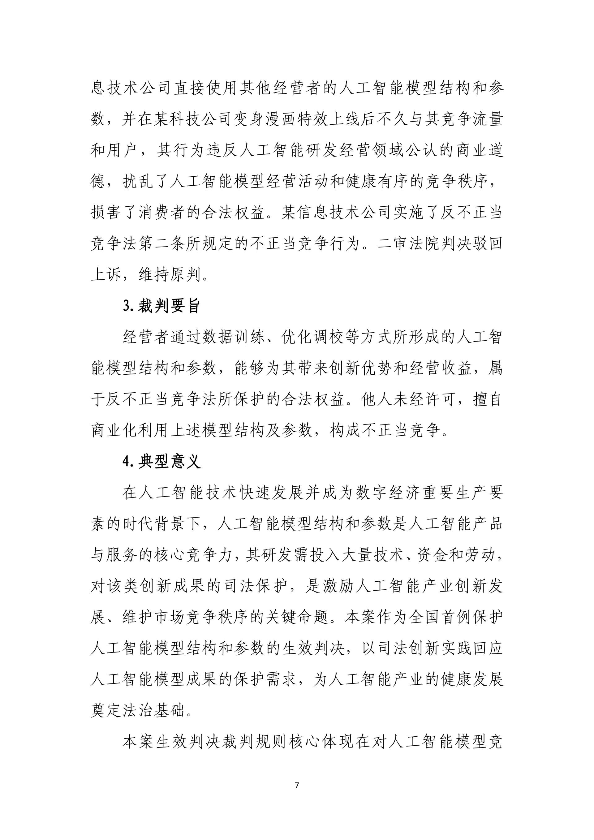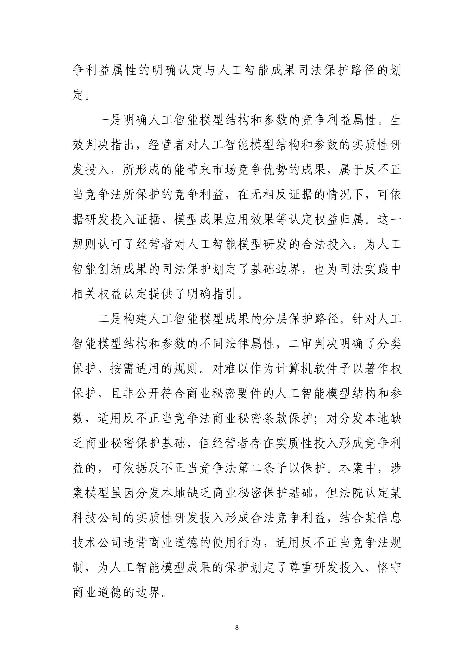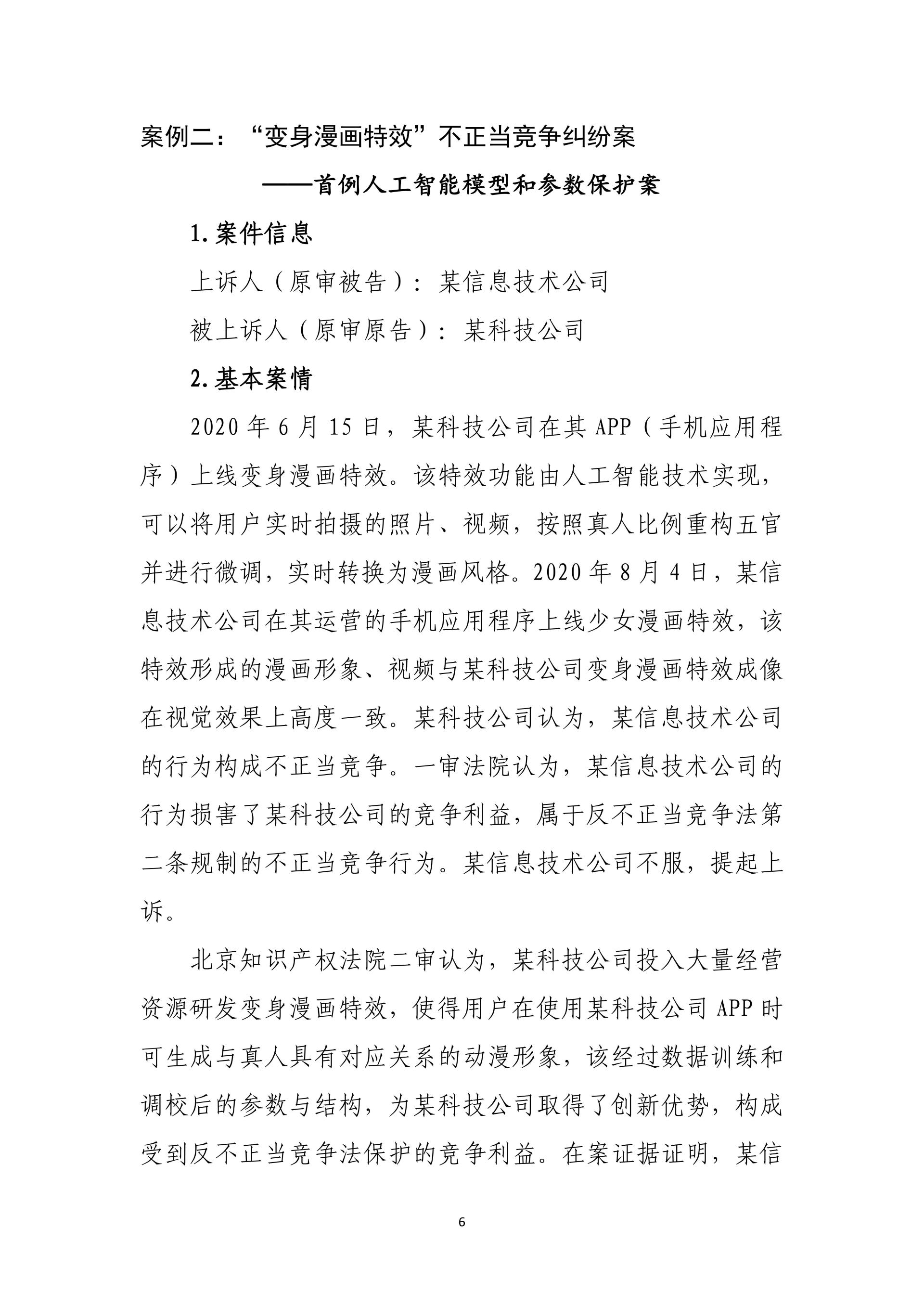 在护航科技自立自强、服务高质量发展方面,通过水泥协会组织垄断系列案、变身漫画特效案、拥堵延时指数案、锌电解污染治理装备案等,明晰行业竞争边界,填补人工智能与数据保护规则空白,激发产学研协同创新活力。