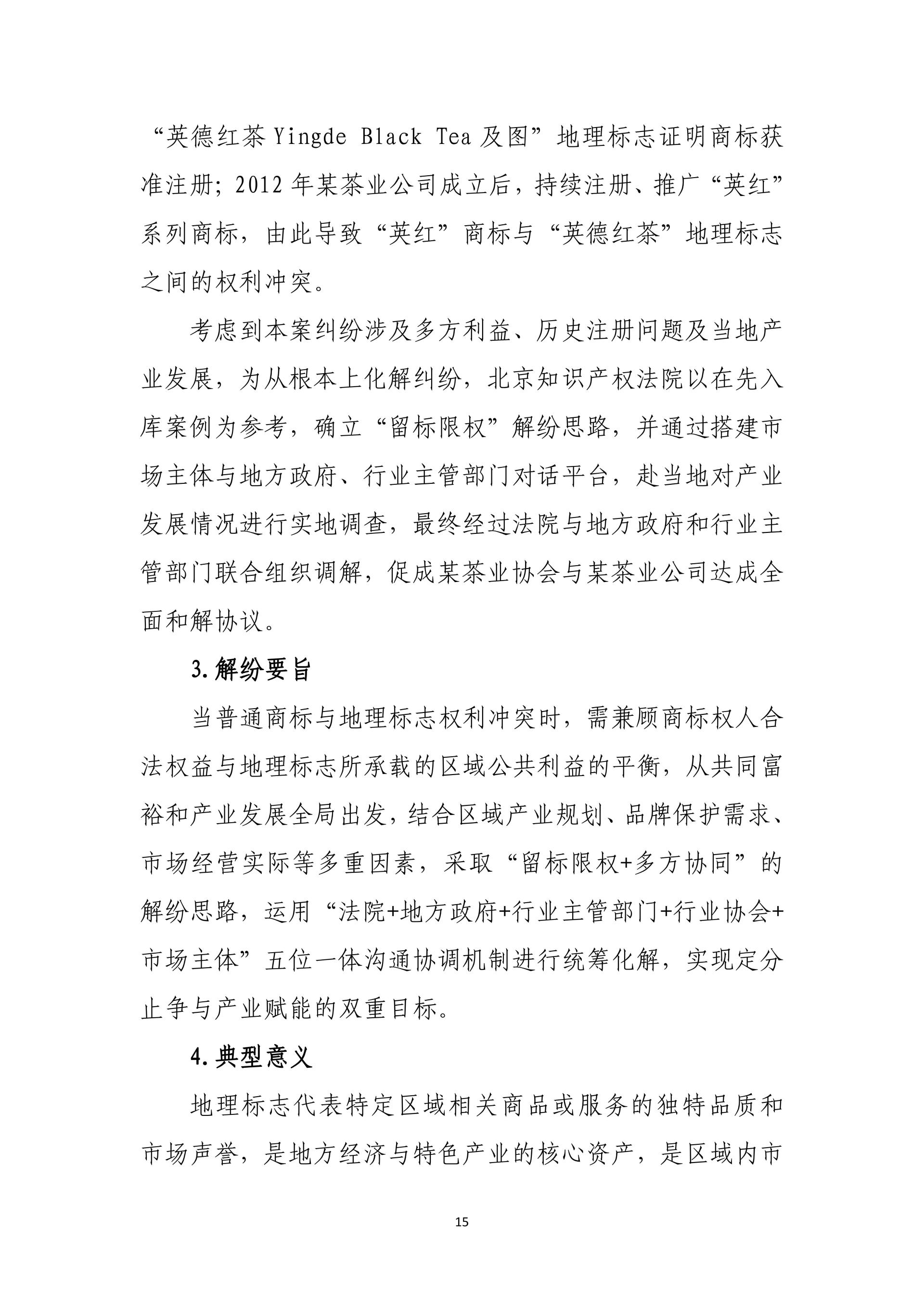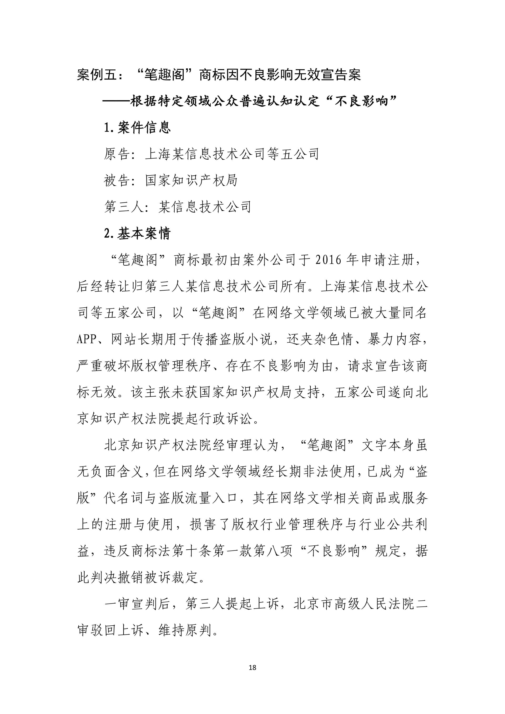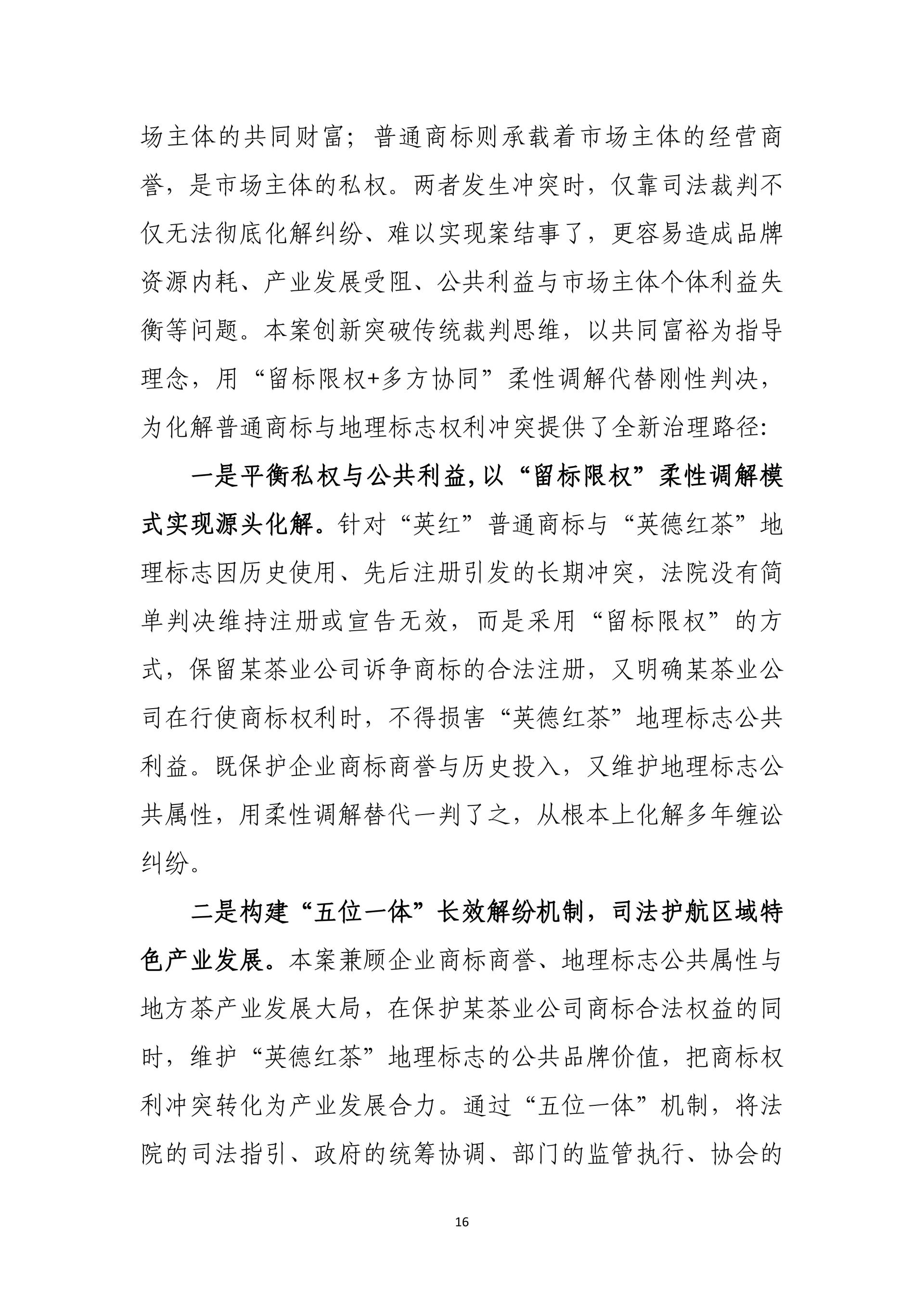 在践行核心价值观、助力社会治理现代化方面,通过英红地理标志系列案、抄袭现有技术恶意申请专利行政案、复合肥问题专利案、阿里云盘案、笔趣阁不良影响案、爱星盘案,依法规制恶意申请、囤积商标、滥用权利等行为,完善协同治理、平台责任与网络空间治理规则。
