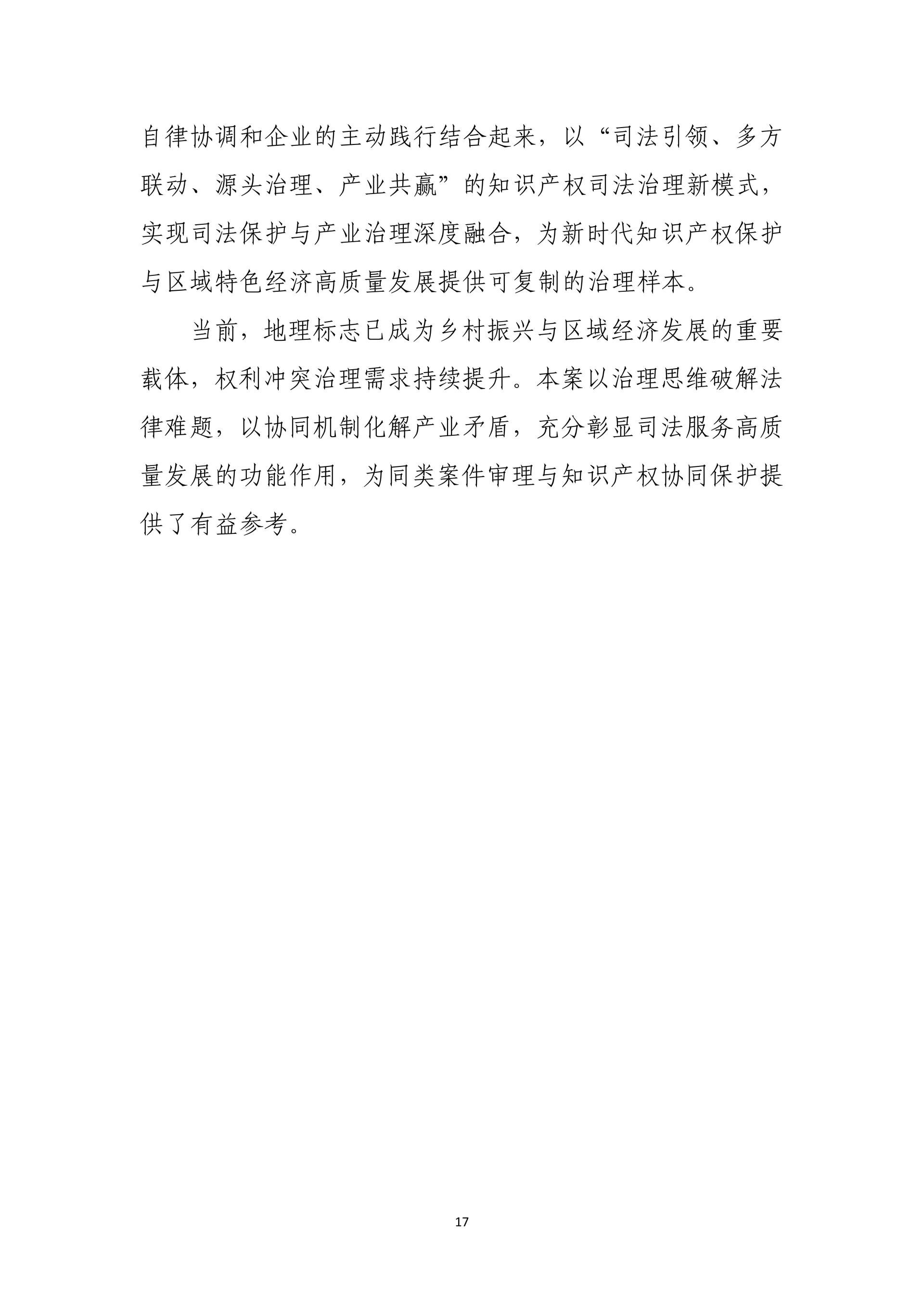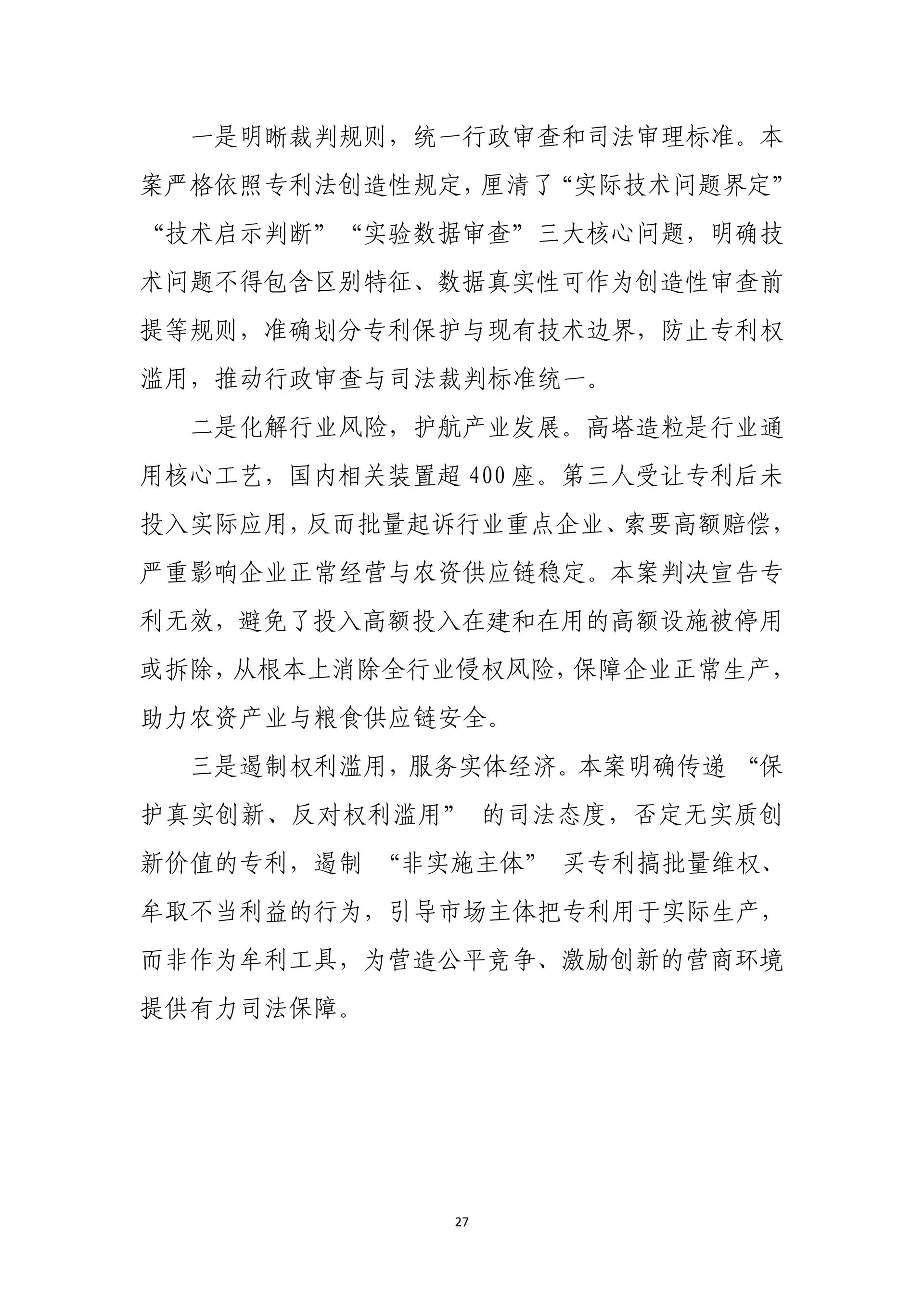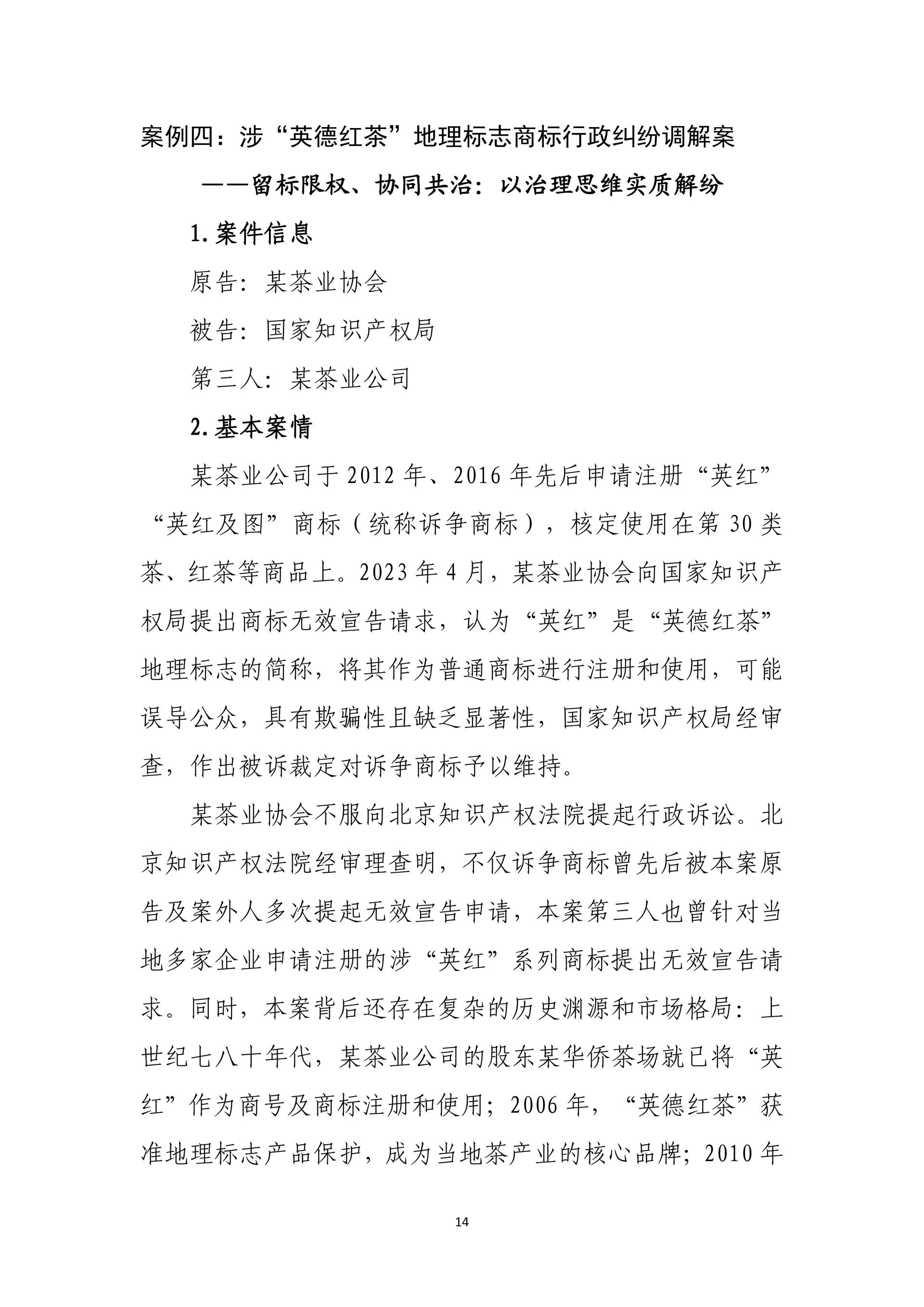 在践行核心价值观、助力社会治理现代化方面,通过英红地理标志系列案、抄袭现有技术恶意申请专利行政案、复合肥问题专利案、阿里云盘案、笔趣阁不良影响案、爱星盘案,依法规制恶意申请、囤积商标、滥用权利等行为,完善协同治理、平台责任与网络空间治理规则。