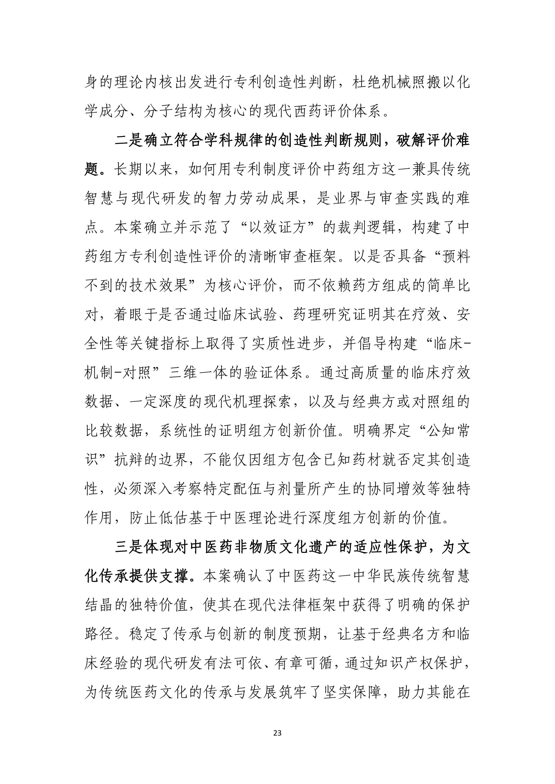 北京知识产权法院为构建公平有序、激励创新的知识产权司法生态作出了重要积极贡献。我建议:进一步深挖典型案例社会价值与引领作用,丰富视频宣传载体,放大普法示范效果;注重产品迭代中的利益平衡,强化早期投资人权益保护,引领科研诚信创新;全域推广柔性调解,妥善化解商标、地理标志纠纷,兼顾地方产业与多方主体利益;针对中药特性实行差异化专利保护,针对地理标志多头乱象提出司法建议、推动源头制度完善,以司法裁判引领行业规则,实现纠纷源头减量、长效治理。