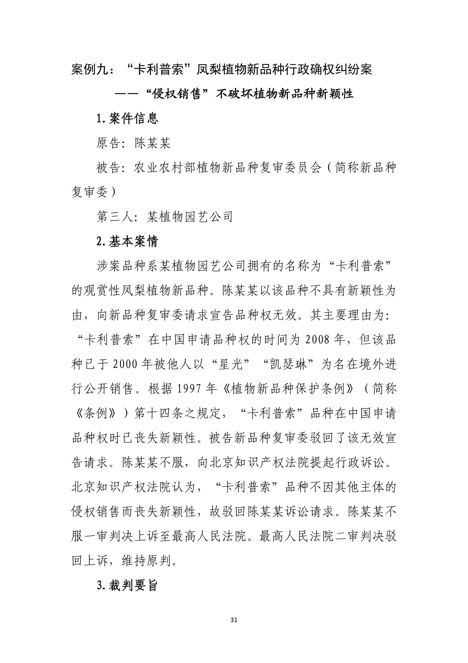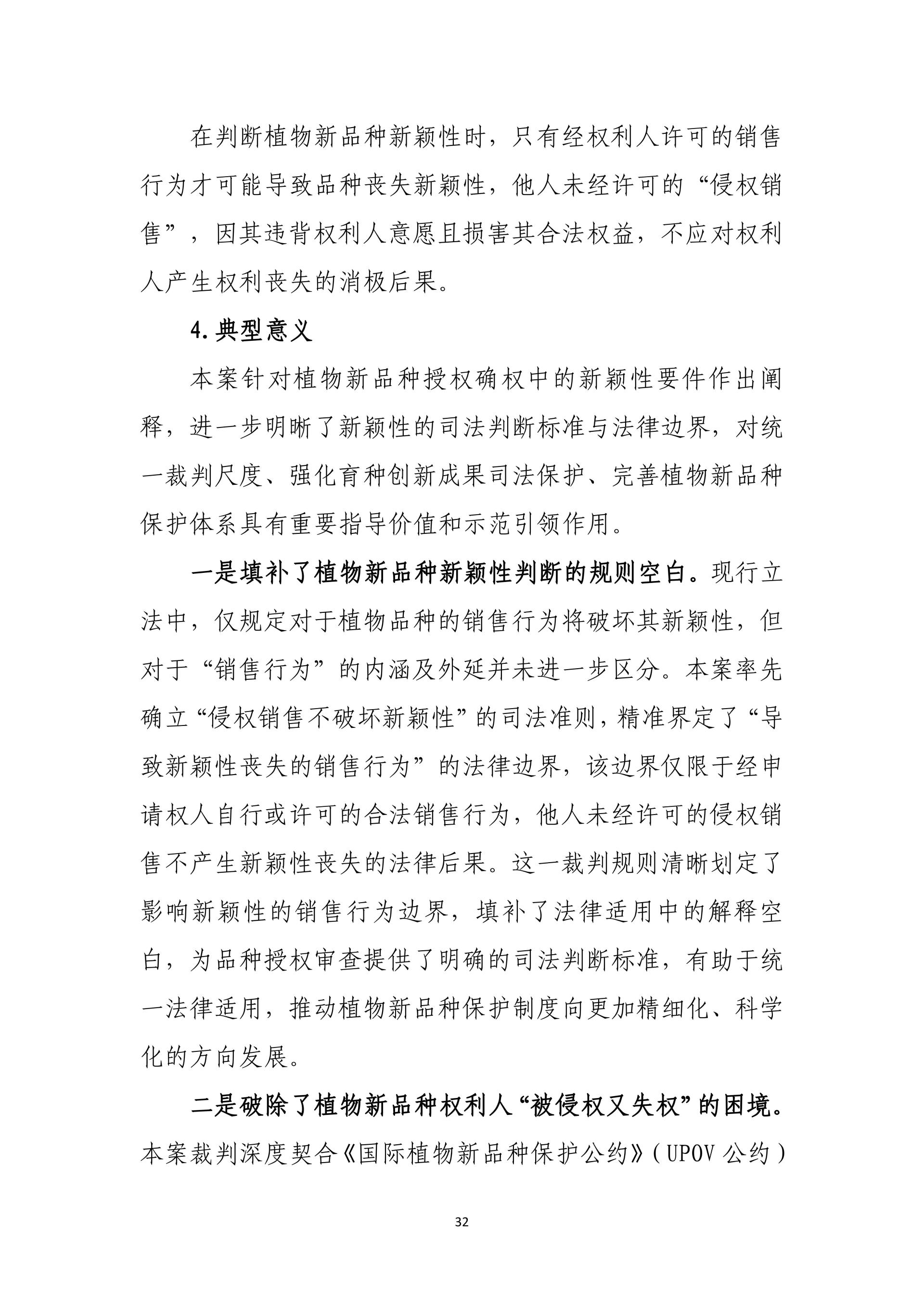 在护航种源自主可控、筑牢粮食安全防线方面,通过卡利普索凤梨品种案、泰紫薯1号案、农大372案,明确植物新品种新颖性判断与全链条保护规则,强化育种创新与种业市场秩序保护。