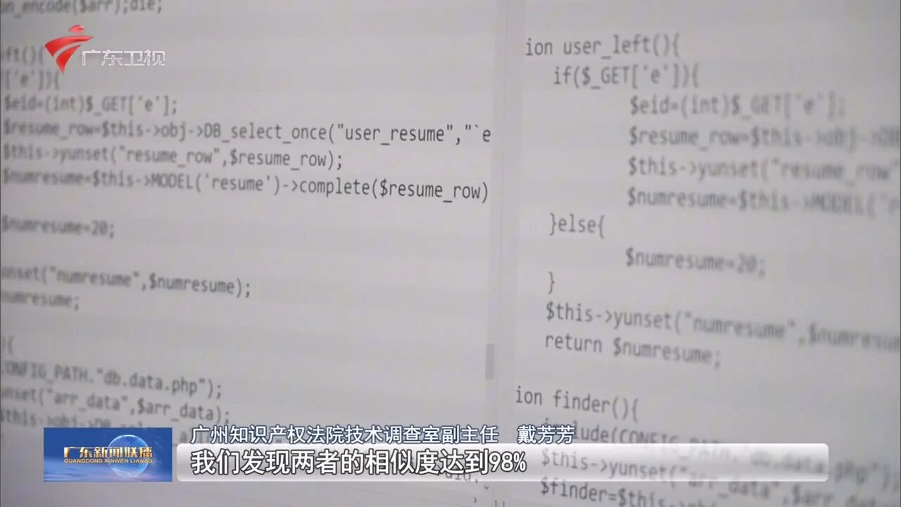 据广州知识产权法院技术调查室副主任戴芳芳介绍,将案涉双方的代码进行比对,其中包括数字人的代码以及相关的数据表,结果发现两者的相似度达到98%,原告的一些logo也出现在了被告的代码之中。